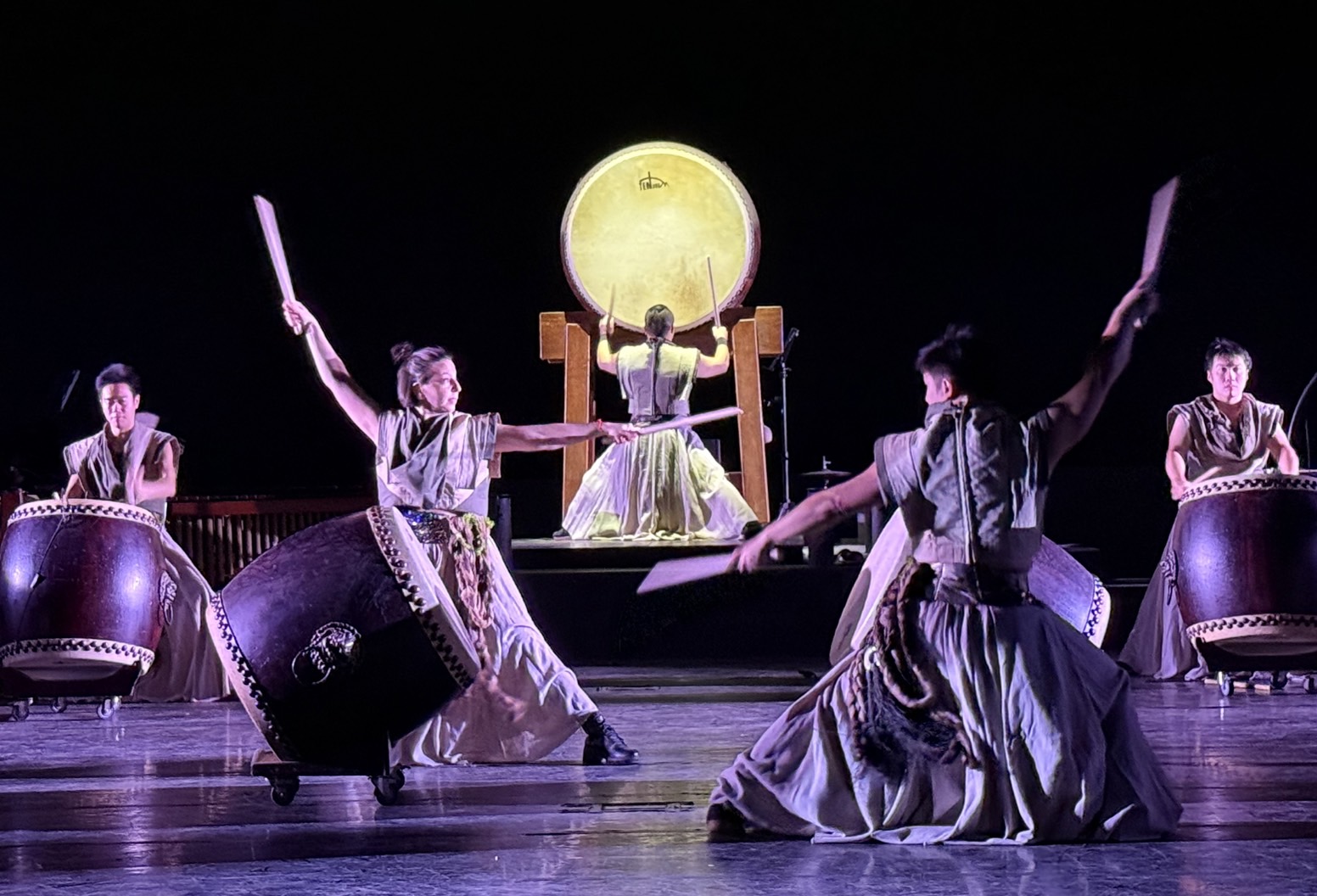 ↑圖說:主持人參與十鼓文創園區融合傳統與現代的表演藝術(圖片來源:臺南市觀旅局提供)