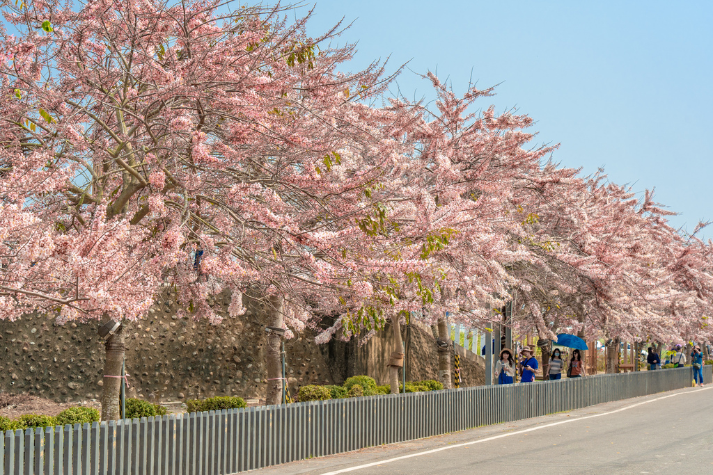 ↑圖說:2024年金砂里花旗木步道花況(圖片來源:臺南市觀旅局提供)