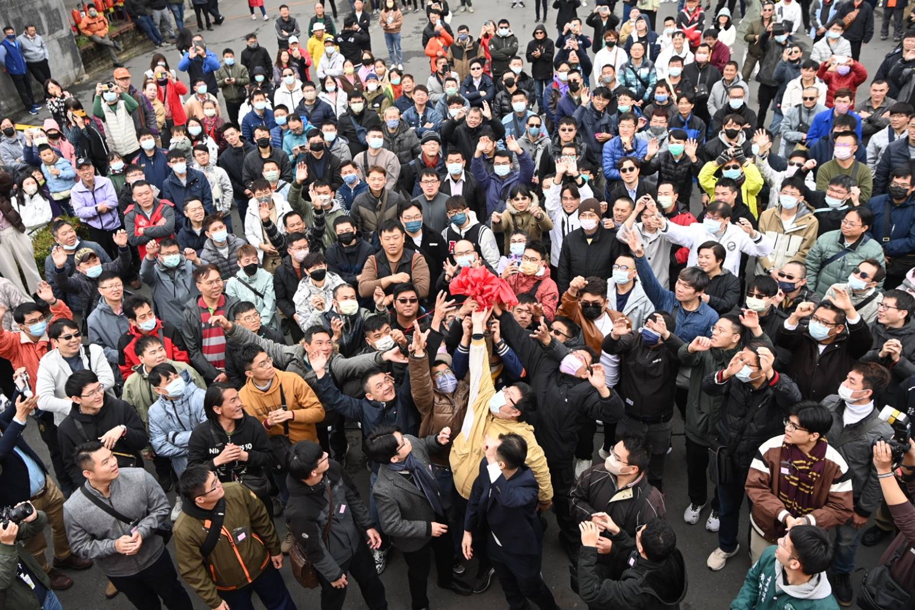 ↑圖說: 接下繡球的民眾合影(圖片來源:嘉義市民政處提供)