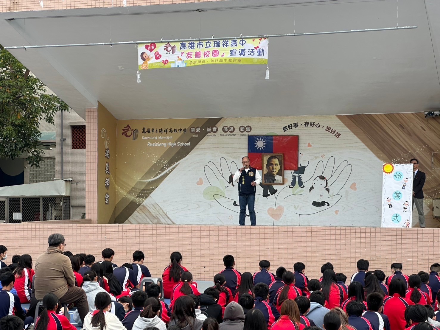 ↑圖說:在開學日當天進行婦幼安全、反毒、識詐宣導,增加孩童的安全概念與警覺性。(圖片來源:高雄市警局少年隊提供)