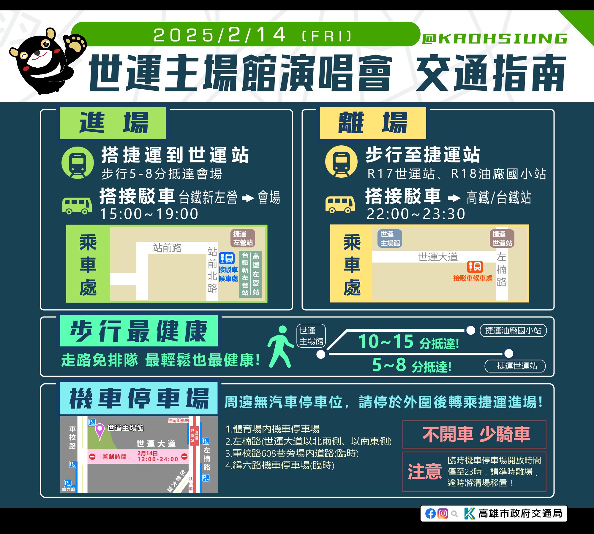 ↑圖說:Maroon5高雄世運主場館演唱會交通指南。(圖片來源:高雄市交通局提供)