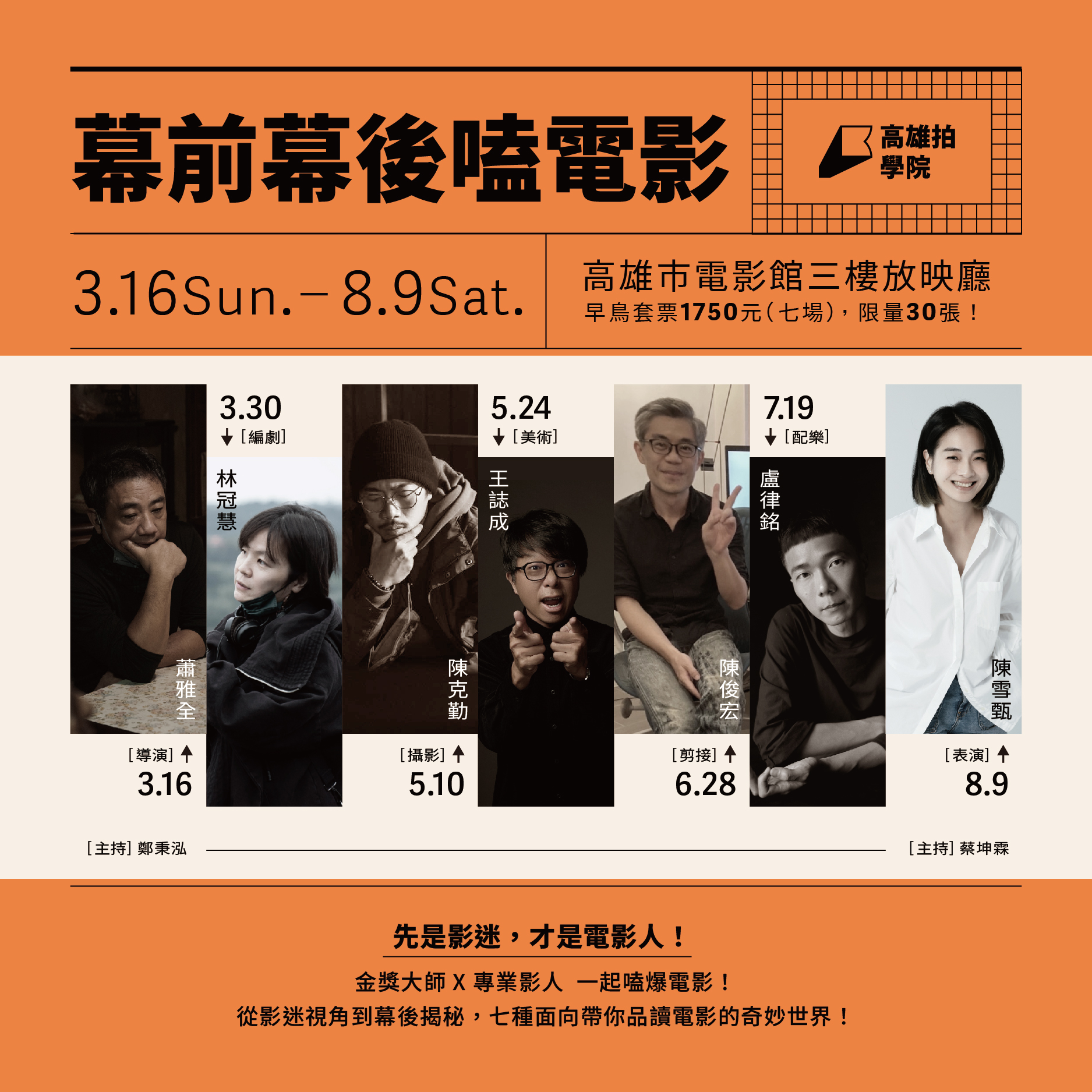 高雄拍學院自2019年起,致力於推動影視教育,為南部影視科系學生、業界從業人員及影迷提供高品質的學習平台。高雄市電影館館長黃晧傑表示,該課程已成為影迷與業界人士的年度盛事,場場座無虛席。今年特別以「幕前幕後嗑電影」為主題,從影像創作的不同環節切入,帶領學員以更全面的視角品味電影之美。