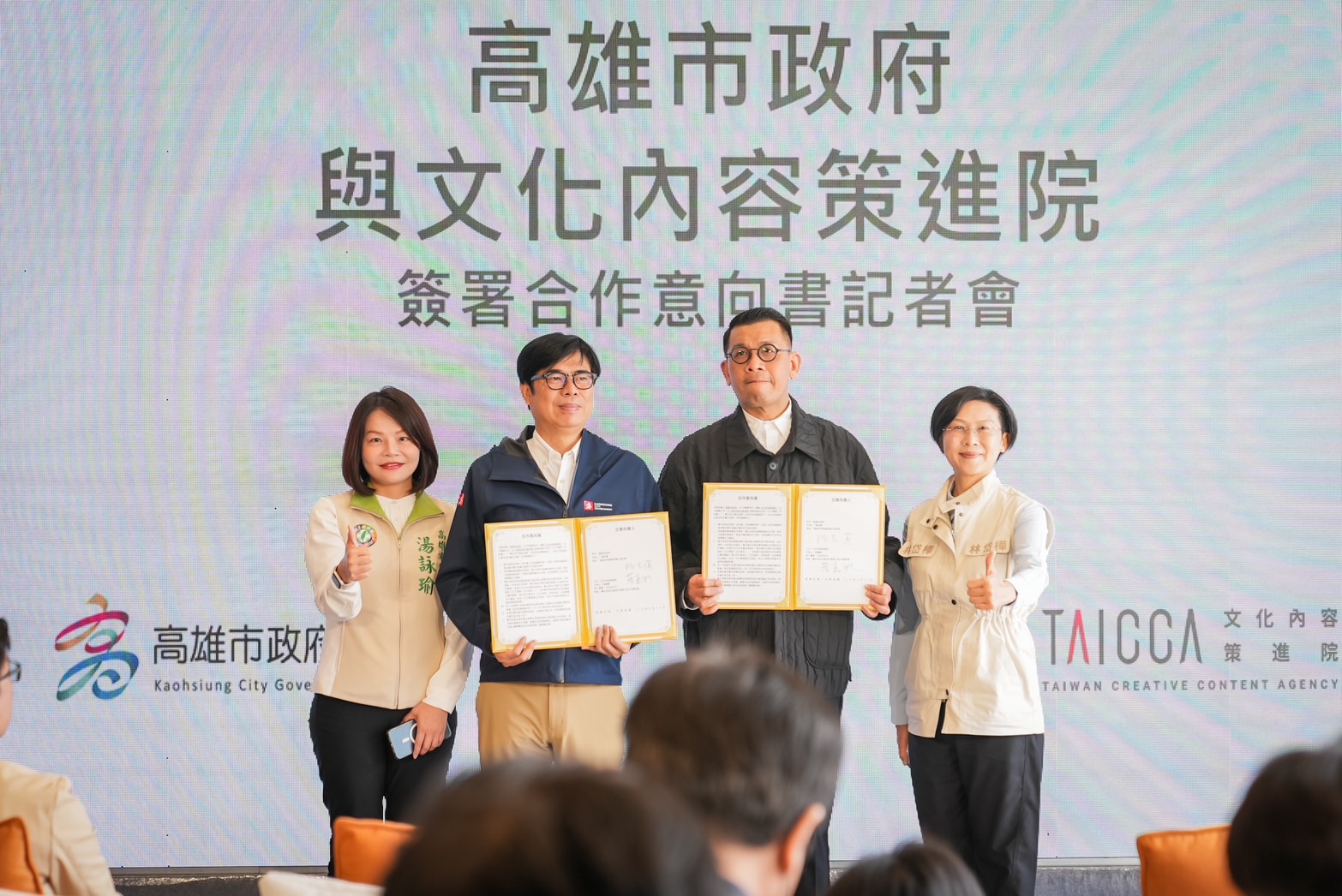 高雄市政府17日與文化內容策進院簽署合作意向書,未來在影視拍攝與文化科技上與高雄市擴大合作,立法委員林岱樺受邀見證表示,感謝陳其邁市長為高雄產業「風華再造」,今天高市府與文策院雙方的合作,可說是為文化產業畫龍點睛,媒合投資者與內容產業,讓文化創作能夠走到對外推廣的最後一哩路。