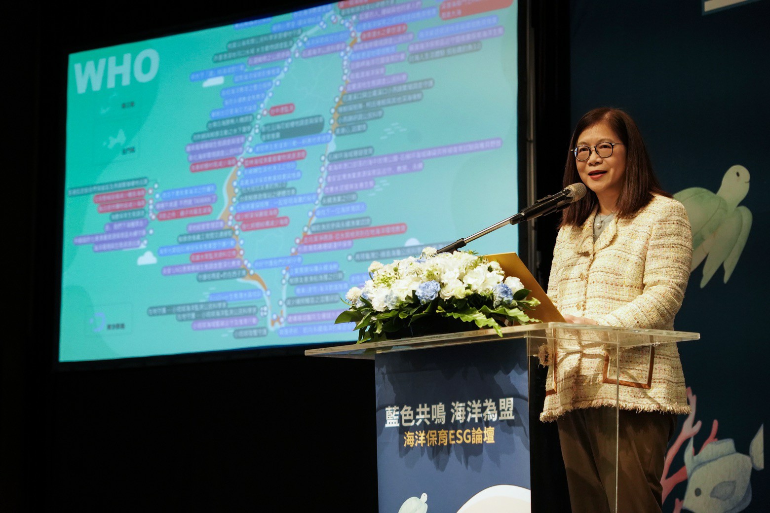 ↑圖說:管碧玲表示,透過法規如《海洋保育法》、《海洋污染防治法》的推動,並結合企業、民間團體的力量,共同落實「人與自然和諧共榮」的目標,將願景轉化為具體行動。(圖片來源:海洋保育署提供)