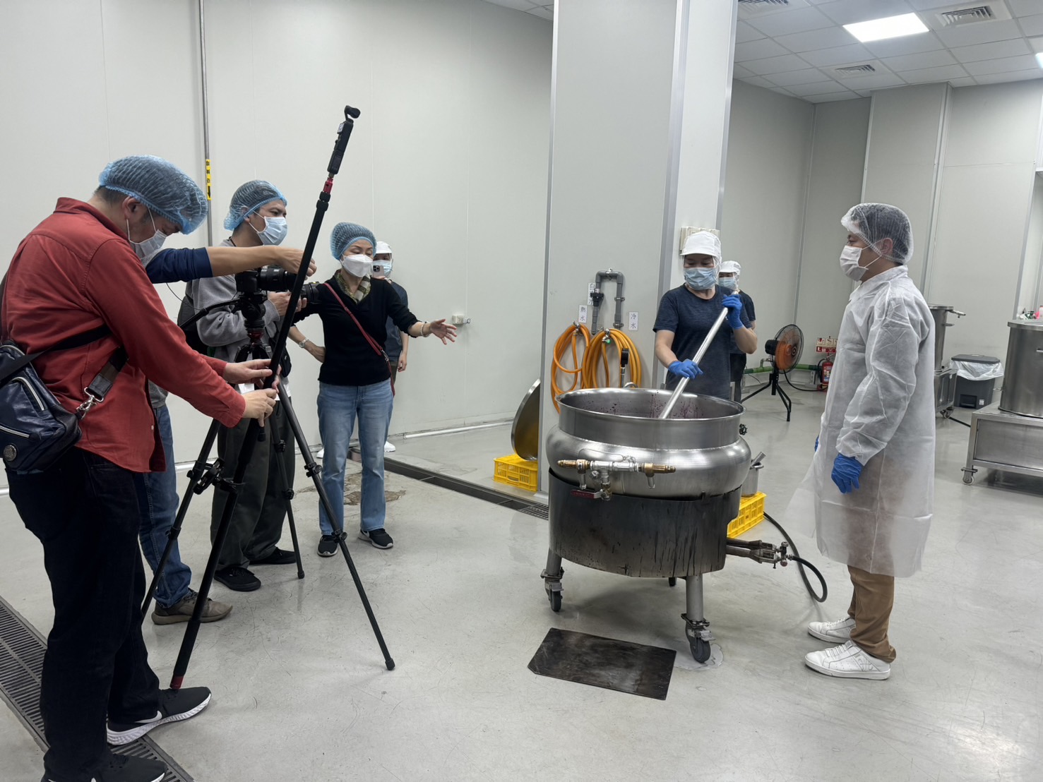↑圖說:攝影團隊至陳稼莊自然農園有限公司拍攝桑葚果醬的製作過程(圖片來源:高雄市農業局提供)
