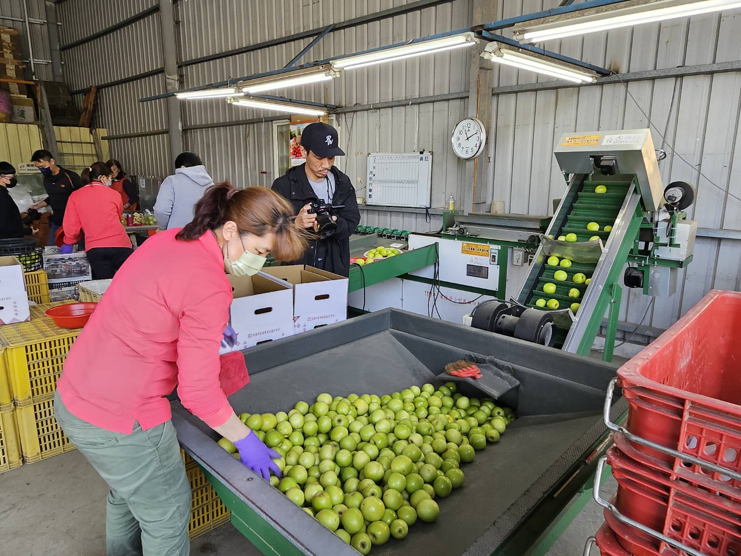 ↑圖說:東京電視購物頻道「虎之門市場」的專業拍攝團隊搭機來台到高雄產地取景。(圖片來源:高雄市農業局提供)