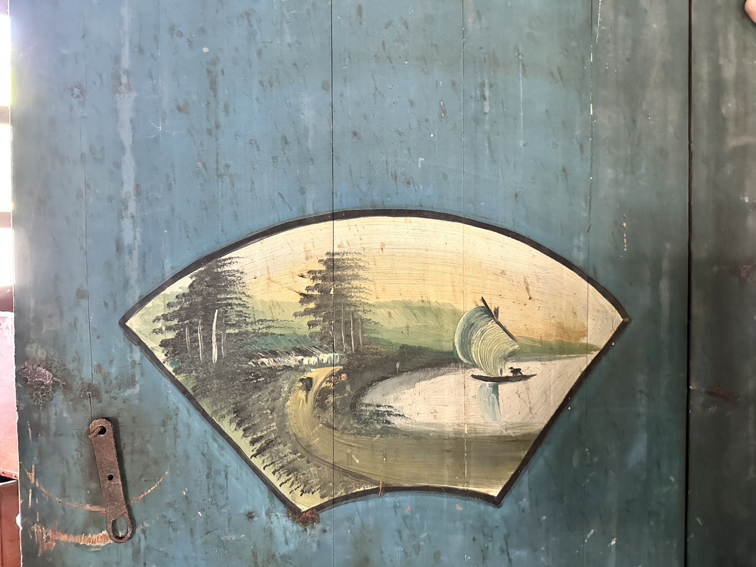 ↑圖說:木門採西式彩繪風格融合中式工法,門板上開窗可見船影,寓有「一帆風順」的美好祝願,兼具藝術與文化價值。(圖片來源:臺南市文化局提供)