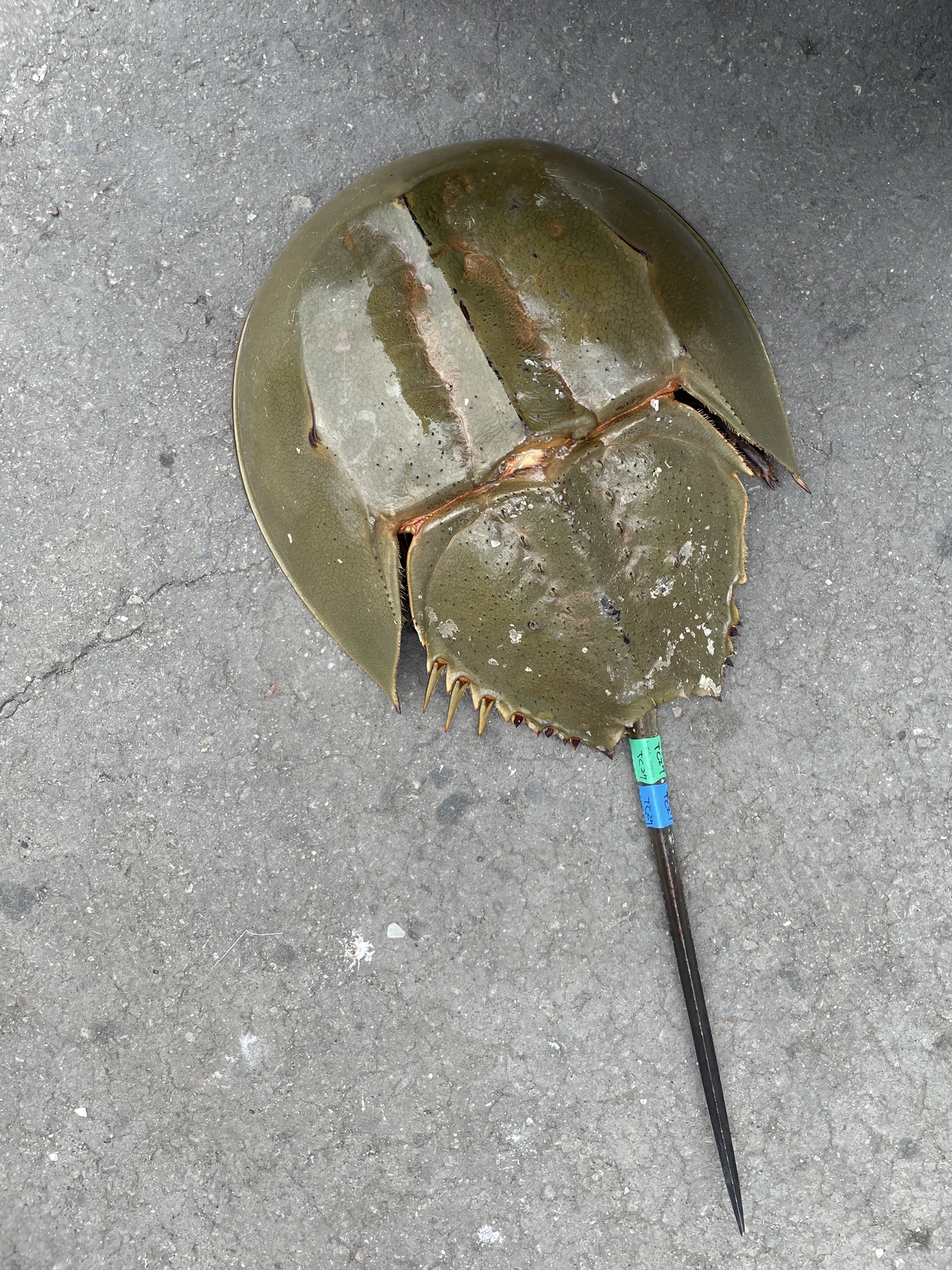 ↑圖說:成鱟體外標識(圖片來源:海洋保育署提供)
