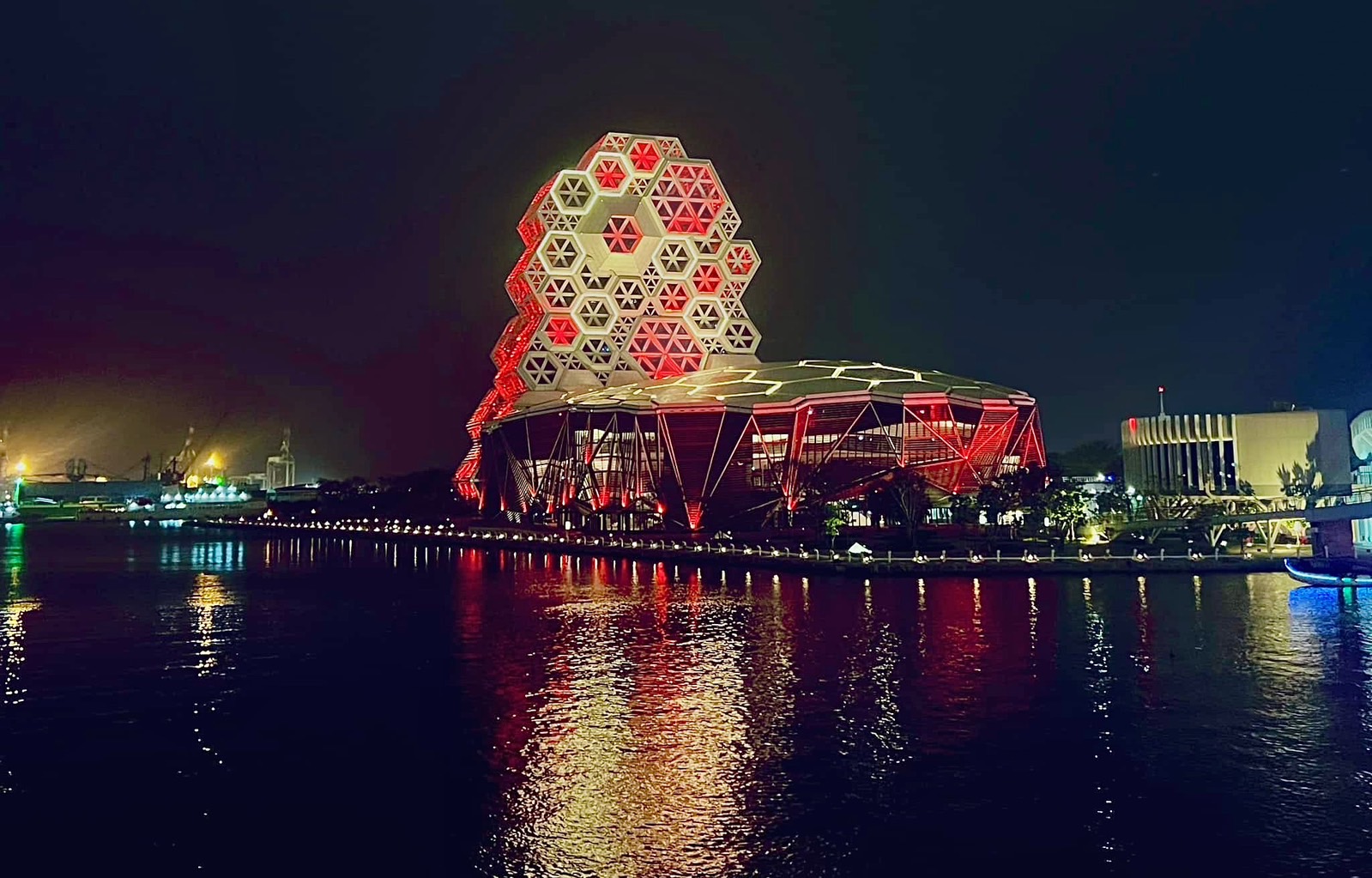 ↑圖說:高雄流行音樂中心於3月6日至3月8日點亮特燈(圖片來源:高雄市文化局提供)