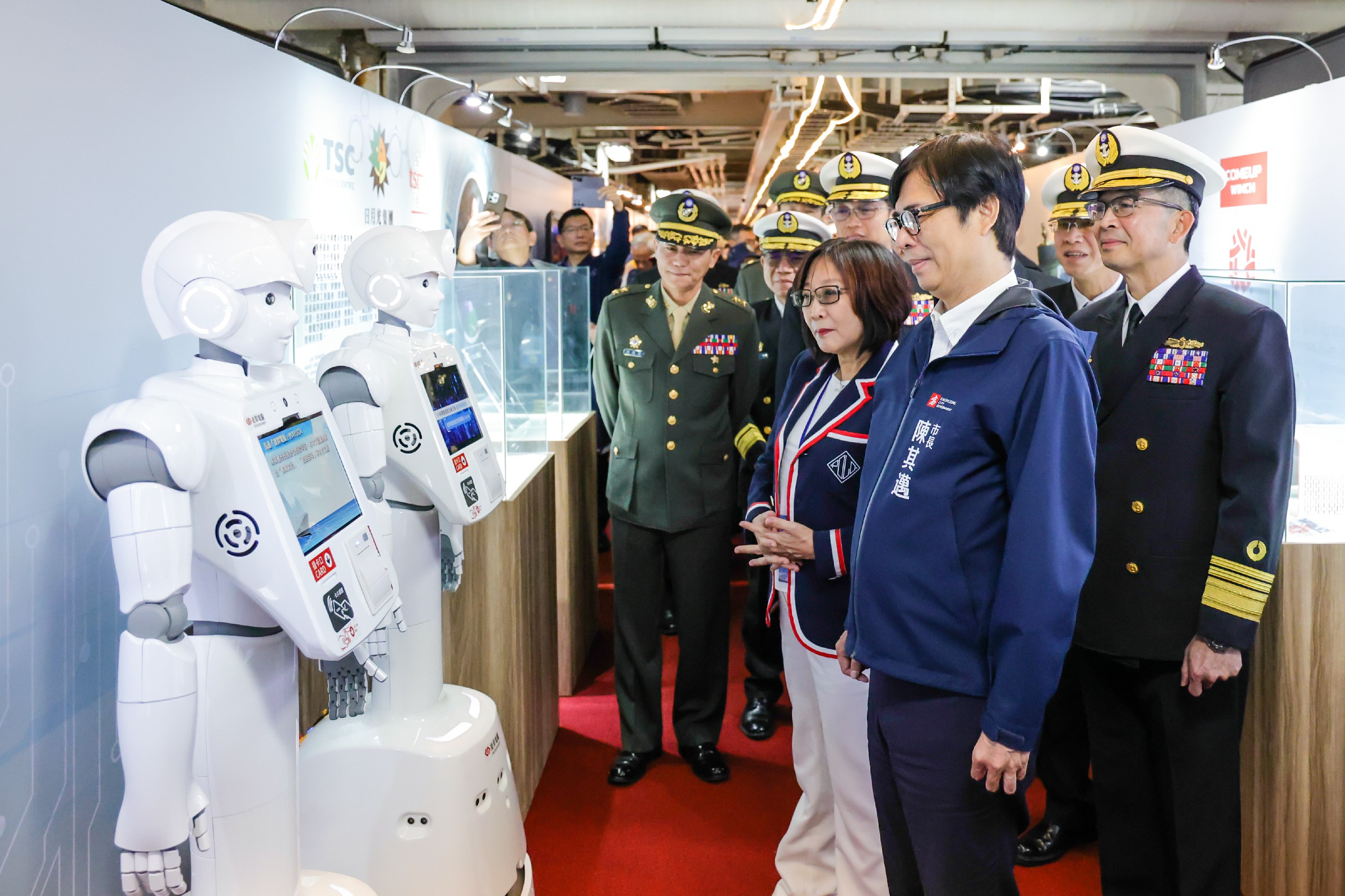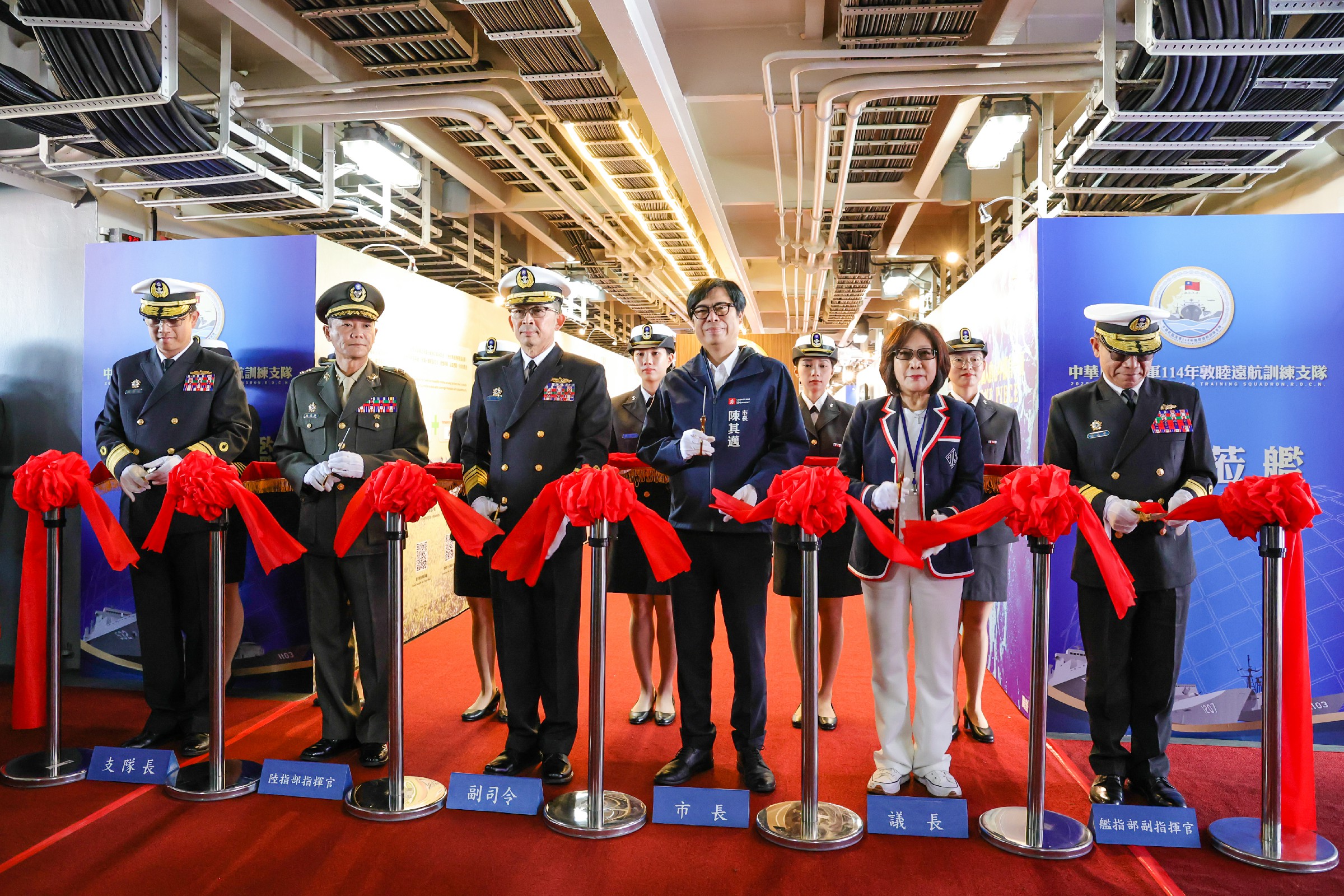 儀式後,陳其邁參與文宣館開幕剪綵,並參觀磐石艦展區,瞭解以「建構防衛韌性,捍衛海疆安全」為主題的展區設計,深入了解國防自主及科技發展成果。