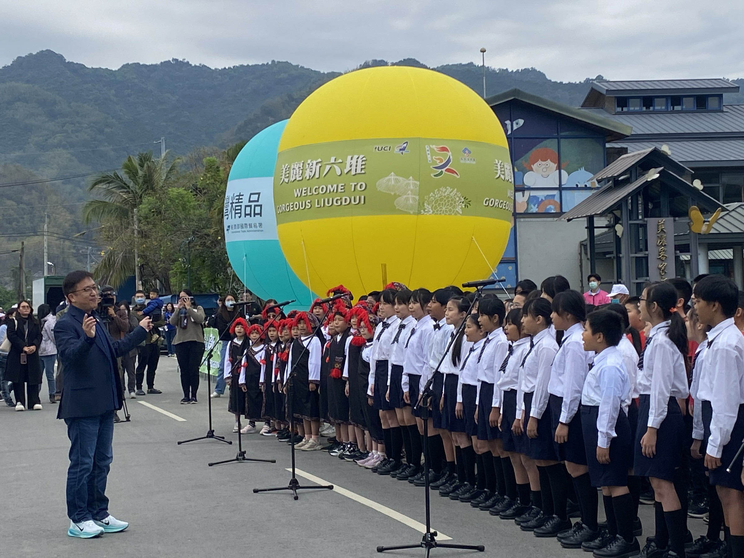 本屆「美麗新六堆站」是國際自由車總會(UCI)認證的2.1級頂尖賽事,全新納入賽道挑戰。選手從美濃客家文物館出發,騎經國定古蹟竹仔門發電廠,隨即進入蜿蜒曲折的山路,挑戰技術與耐力極限。一側是連綿青山,一側俯瞰荖濃溪壯闊溪谷,多變的彎道考驗著選手們的應變能力。沿途更設有由美濃及六龜區公所、6所學校與10個社區團體攜手打造的18座特色加油站,學生與鄉親身穿藍衫或客家服飾,舞獅、鑼鼓齊鳴,還有中英雙語加油口號,展現濃厚的客庄人情味,為選手注入滿滿能量。