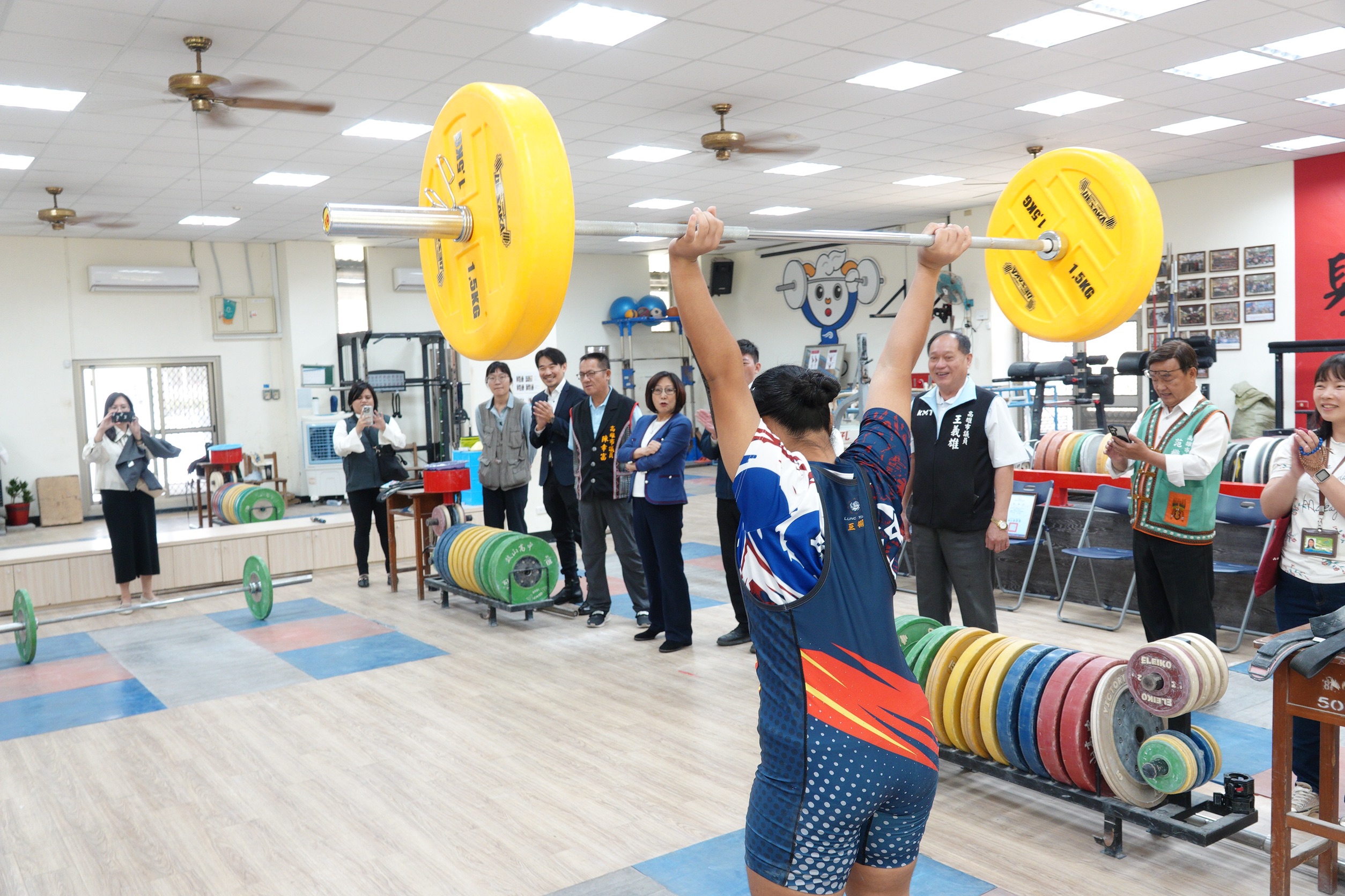 市議員高忠德表示,在舉重隊優秀教練與學生努力下,取得全台最好成績,期勉全中運能再次取得最多的金牌,讓各界刮目相看,讓陳其邁市長及企業再次加碼。永豐盛企業董事長楊紘先則深受舉重隊選手的努力而感動,他也勉勵小小選手們能透過舉重運動,找到不一樣的人生方向。一行人前往參觀鼓山高中舉重館設備及環境,受到環境限制,小選手們須辛苦的集體住宿、受訓。令人心疼,康裕成及議員則期盼市府和教育局能儘速研議,優化場館環境及學生住宿環境。