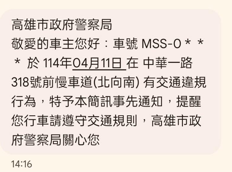高雄交通違規簡訊服務再升級 即時提醒車主 減少重複違規