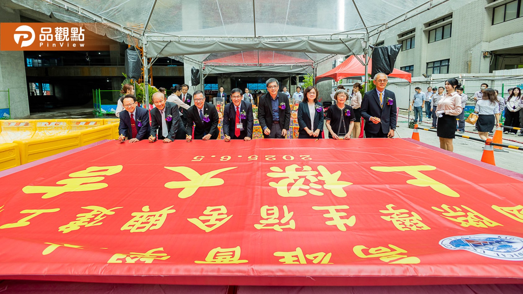 圖說:高醫大校長余明隆(左五)行前為訪問團授旗。(圖片來源:高雄醫學大學提供)
