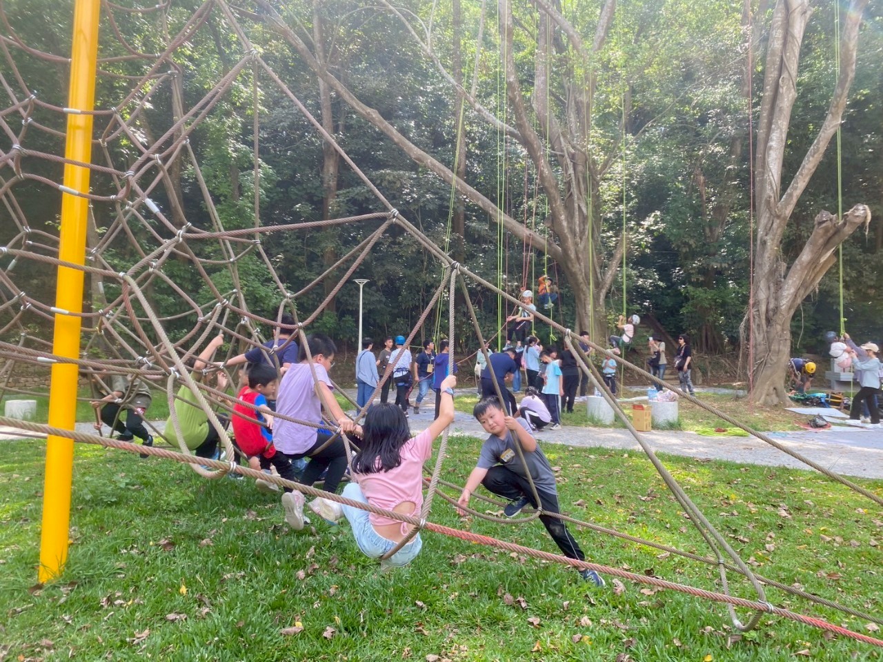 活動中特別設置的創意攀樹與繩索鞦韆體驗最受歡迎,團隊運用現地素材與自研繩索技術,引導孩子們安全攀爬,挑戰高度並俯瞰不同視角下的世界,讓每一位參與者都在汗水中突破自我、開拓眼界。夜間則透過五感探索體驗,帶領孩子們在漆黑森林中靜下心來,用耳朵傾聽夜的聲音,深化對自然環境與自身內在的感知。