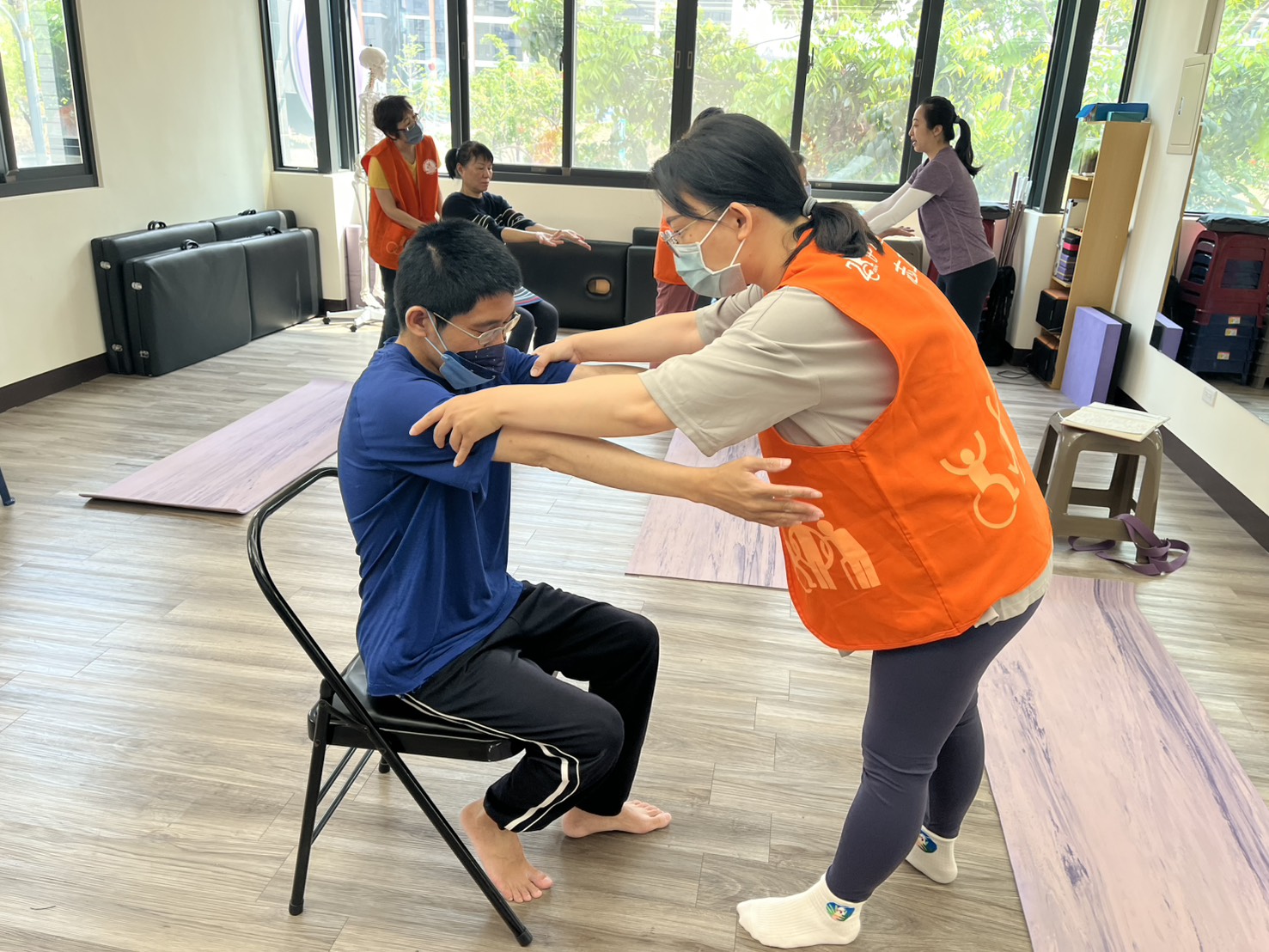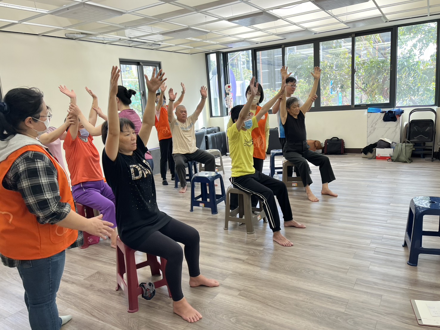 ↑圖說:透過一張椅子就可以展開嬋柔運動了(圖片來源:伊甸基金會提供)