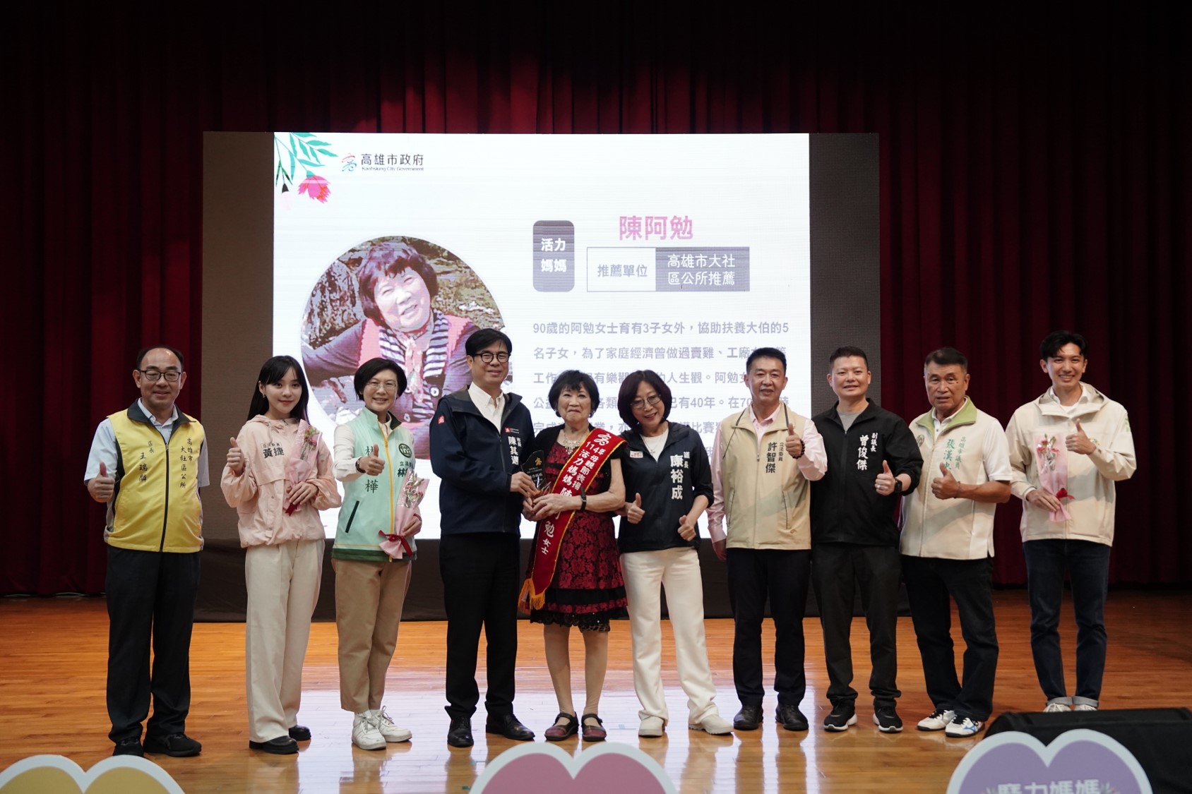 高雄市政府社會局與高雄市故事媽媽協會在這感恩的5月,共同舉辦母親節美力媽媽頒獎典禮,每位獲獎媽媽由市長陳其邁親自頒贈祝福獎座,感謝美力媽媽們用他們的力量及對生命的堅韌守護著家庭。