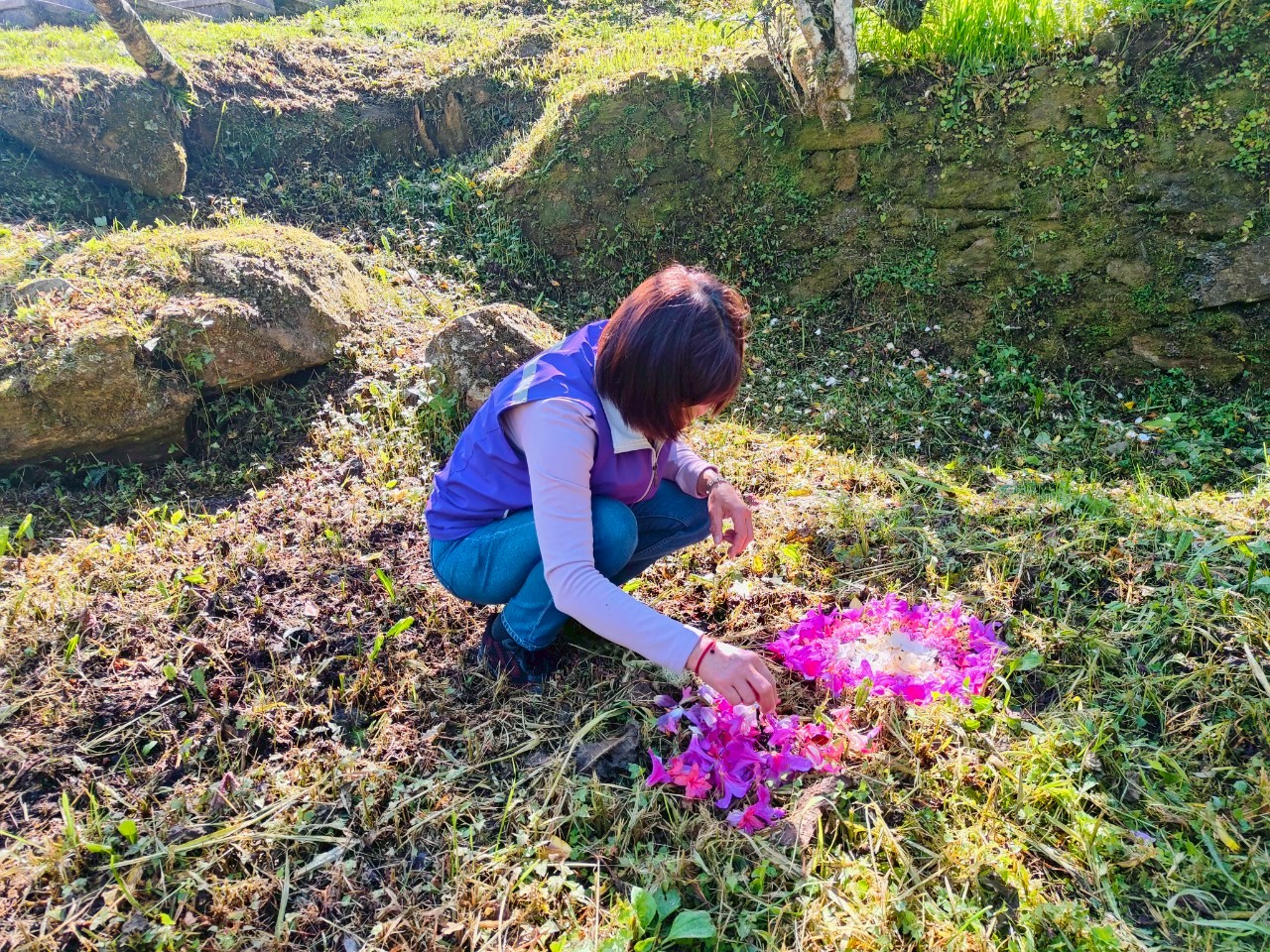 ↑圖說:沼平公園落花進行曼陀羅陣自然冥想。(圖片來源:阿里山賓館提供)