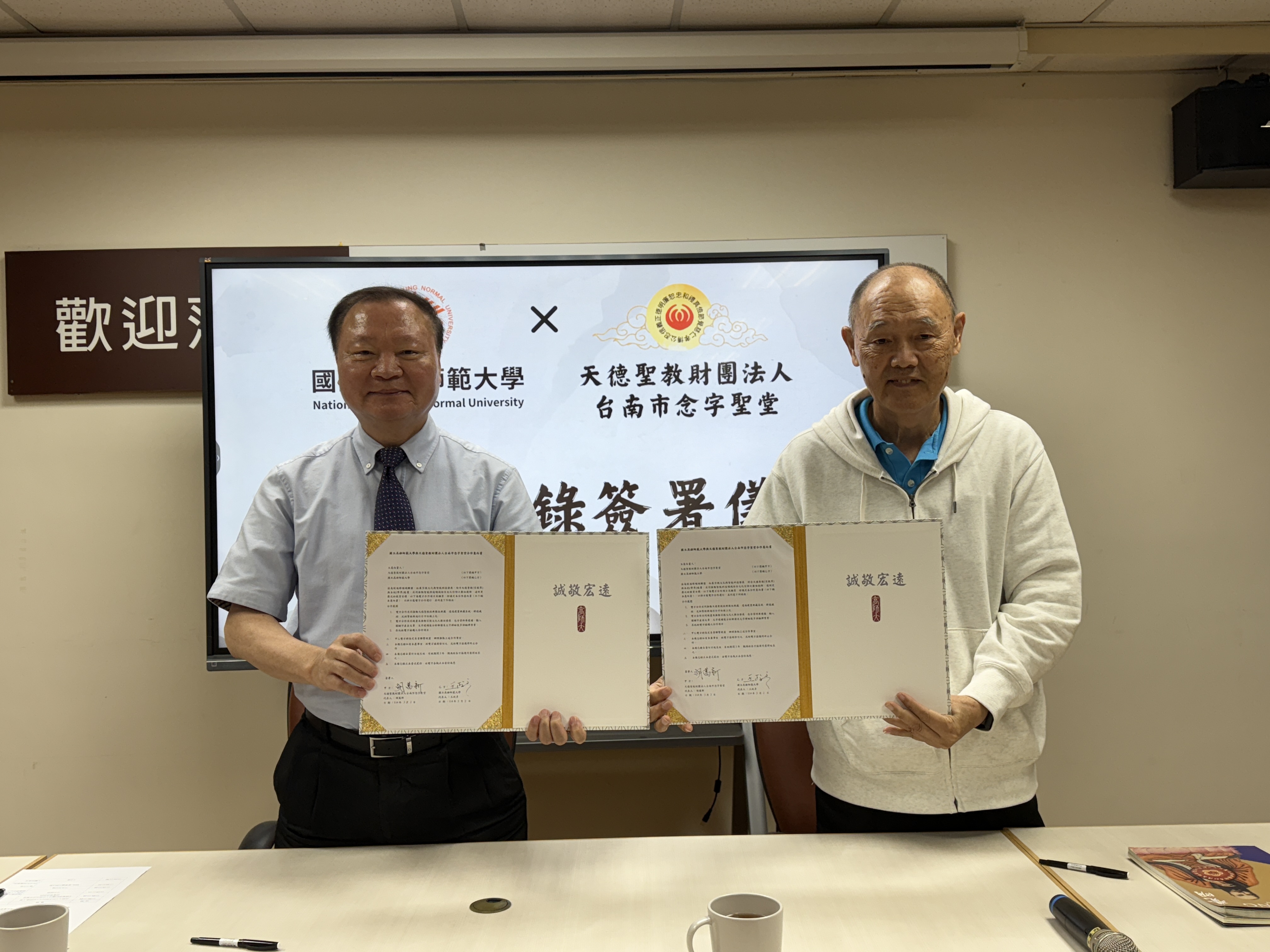 天德聖教董事長胡萬新指出,天德聖教重視經典教義的保存與弘揚,透過與高師大的合作,不僅能提升經典保存的數位化層次,也將能開發出符合時代需求的智慧宗教應用,以科技之力將信仰精神推廣到更廣大的群眾,為宗教文化保存與創新樹立新典範,展現宗教文化現代化、國際化的嶄新面貌。