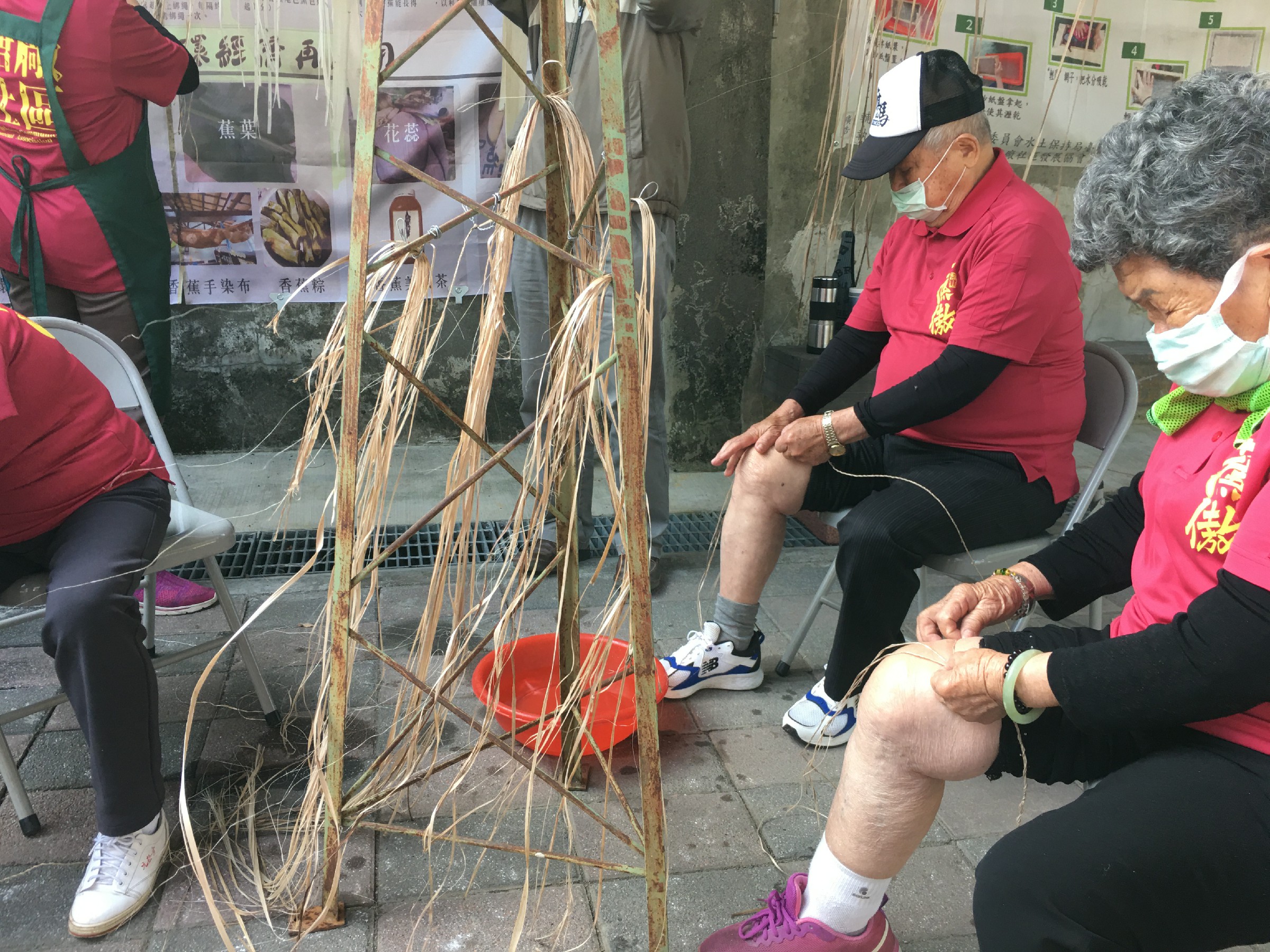↑圖說:旗糖社區長者將香蕉纖維搓捻成線(圖片來源:高雄市環保局提供)