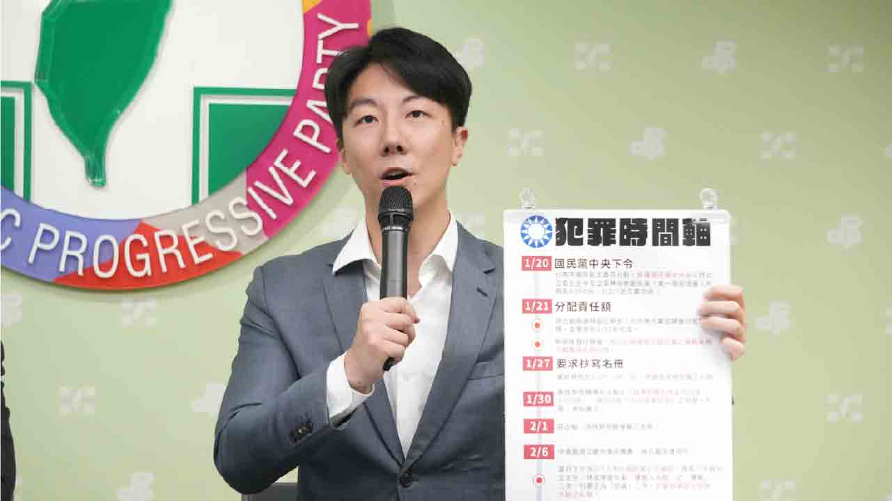 針對國民黨發動罷免民進黨立委林俊憲、王定宇所涉偽造文書案,台南地檢署日前正式起訴國民黨台南市黨部副主委莊占魁等11人,另有37名國民黨工與親友坦承犯行獲緩起訴。民進黨今(9)日召開記者會痛批,這起罷免連署造假事件證據確鑿,是系統性、組織性「抄名冊」的犯罪行為,國民黨中央難辭其咎,主席朱立倫更無法繼續閃躲。