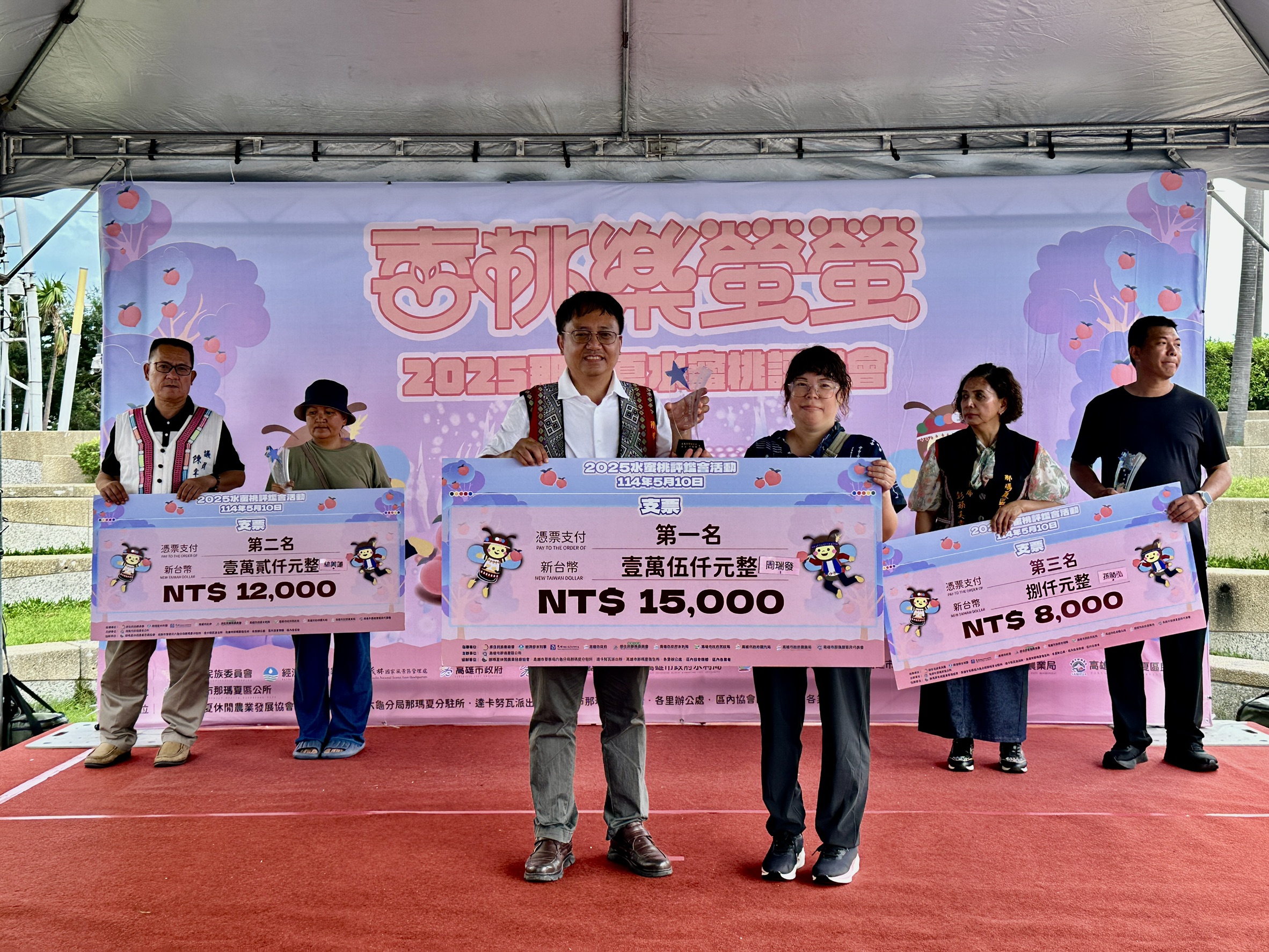 那瑪夏2025水蜜桃評鑑會10日登場,讓夢時代購物中心時代廣場化身甜蜜農特展場,議長康裕成讚那瑪夏水蜜桃「一等一的甜」,水蜜桃評鑑首獎由周瑞發贏得殊榮,活動現場亦安排有「水蜜桃守護者」等多項闖關活動,讓民眾輕鬆過關就可以品嚐到初夏的甜美水蜜桃。