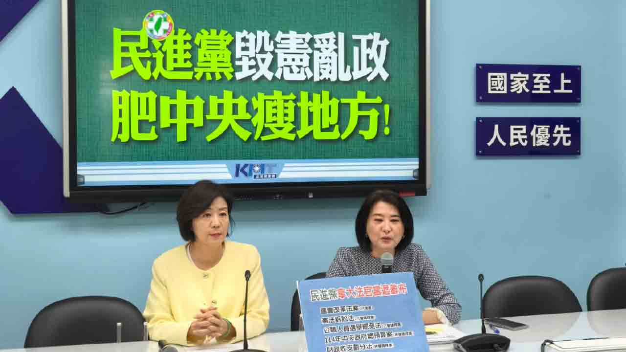 副書記長王育敏指出,《財劃法》修法歷經25年討論,如今通過卻遭民進黨提釋憲,是嚴重踐踏立法院權力。她更強調,賴清德擔任台南市長時,曾強烈主張修法給地方更多財權,如今卻立場大轉彎,「拙勢今非」令人瞠目。