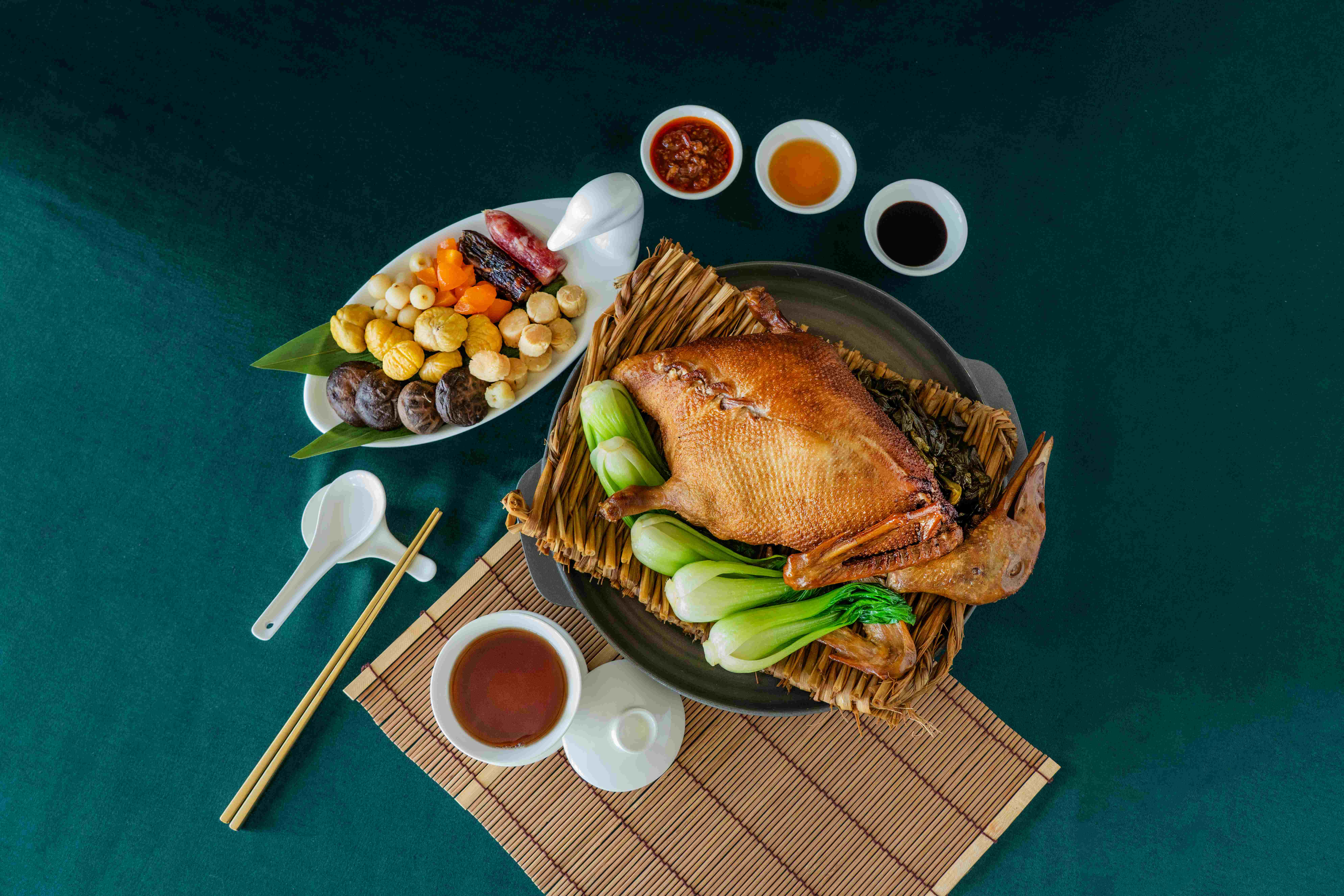 除粽品外,亞果薈更同步推出傳統江浙名菜「稻草八寶鴨」,以細火慢蒸工法傳承經典。全鴨填入瑤柱、蓮子、香菇、臘腸等八寶餡料,外層以稻草包覆,封存食材香氣與滋味,並佐以鴨汁熬製的濃郁芡汁,層次豐富、香氣撲鼻,是闔家共享的節慶佳餚首選。