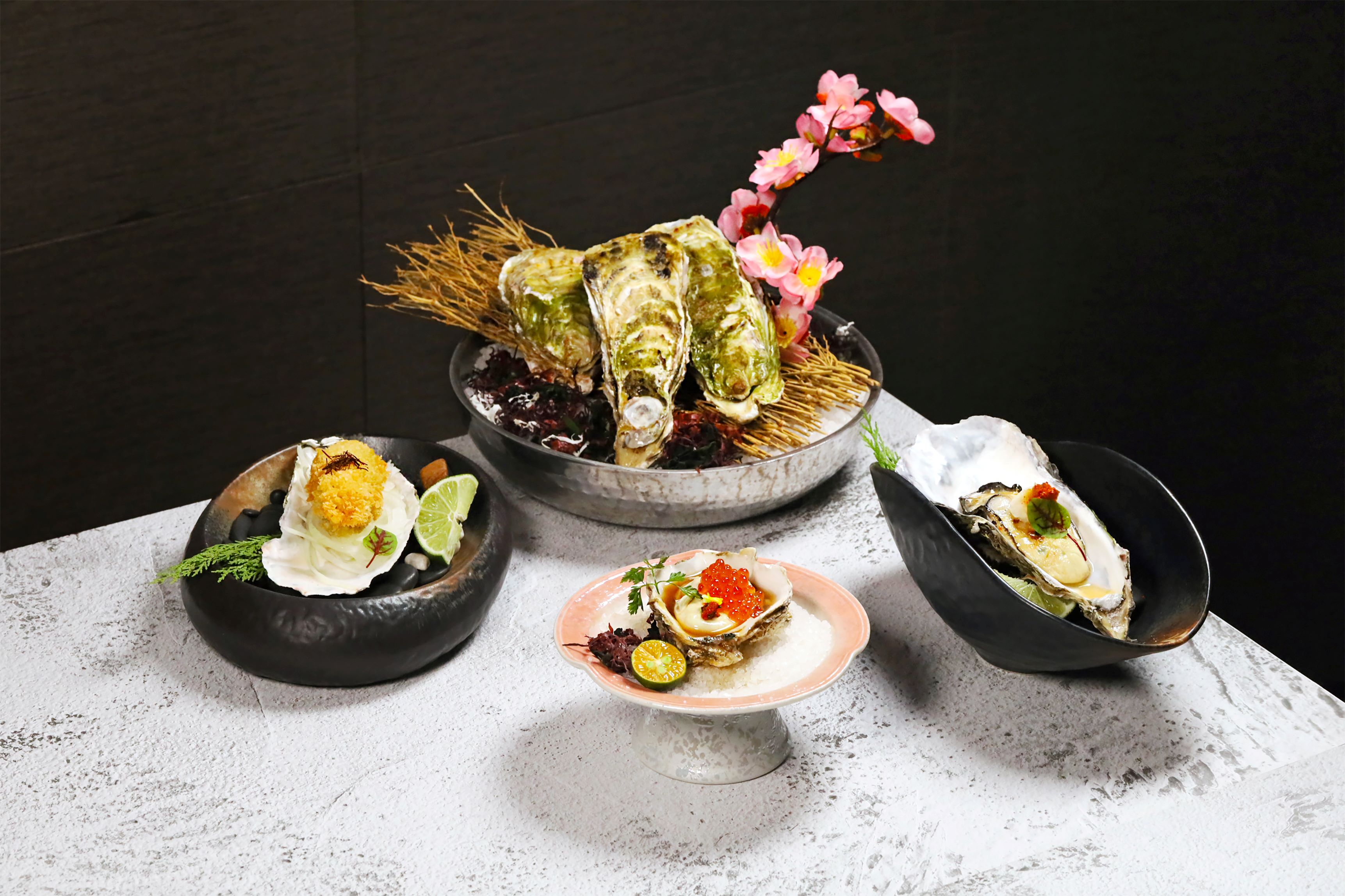 ↑圖說:京樂日本料理餐廳同步推出生蠔三吃,選用鮮活生蠔演繹橙醋醬油、碳烤及酥炸三種風味。(圖片來源:高雄萬豪酒店提供)