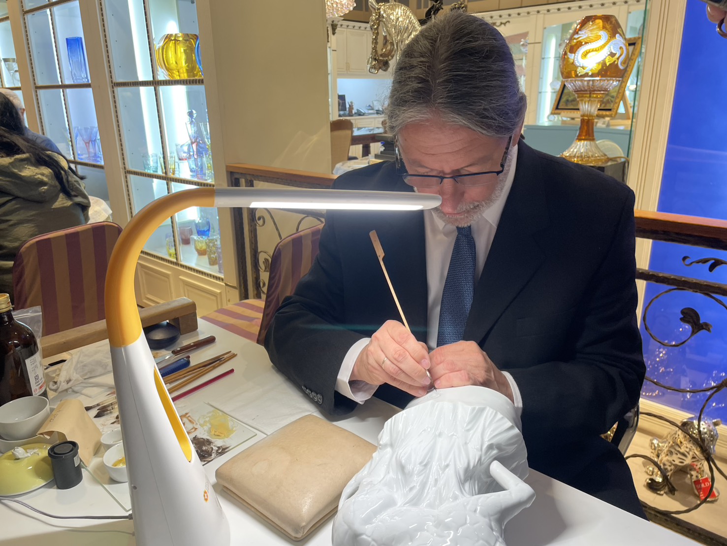 圖說:麥森彩繪大師修茲(Mathis Schultz)專注於瓷偶手繪創作,展現深厚工藝實力(圖片來源/記者林薇安攝)