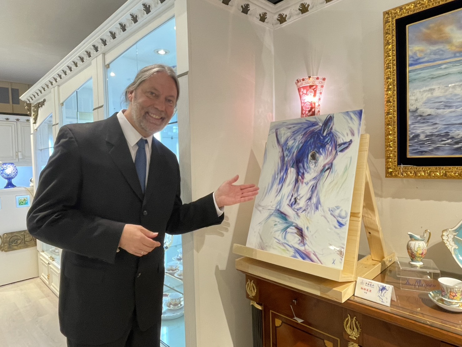 修茲大師於麥森服務逾40年,是全球少數專攻「瓷偶彩繪」的藝術家,其創作需在無支撐的立體瓷偶上進行360度手繪,每一筆都必須精準無誤,挑戰極高。此次來台特別展出《四大元素》中的「水神」與「火神」花瓶,另外兩件則留在台北,已有台南企業家表達高度興趣,預計收藏全套於企業總部中,作為企業文化與品味的象徵。