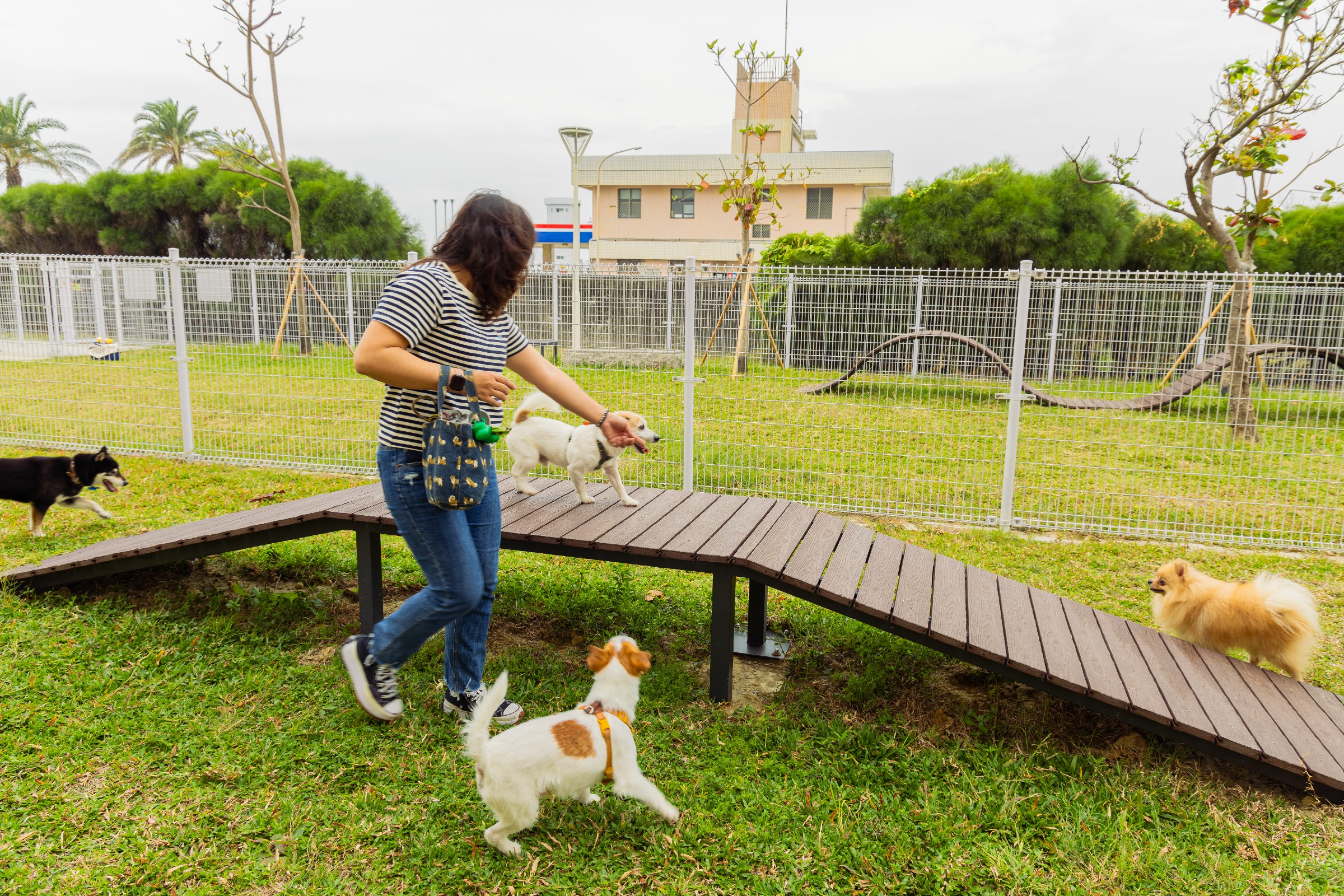 ↑圖說:寵物活動區配備涵洞、獨木橋、休憩座椅等設施。(圖片來源:高雄市工務局提供)