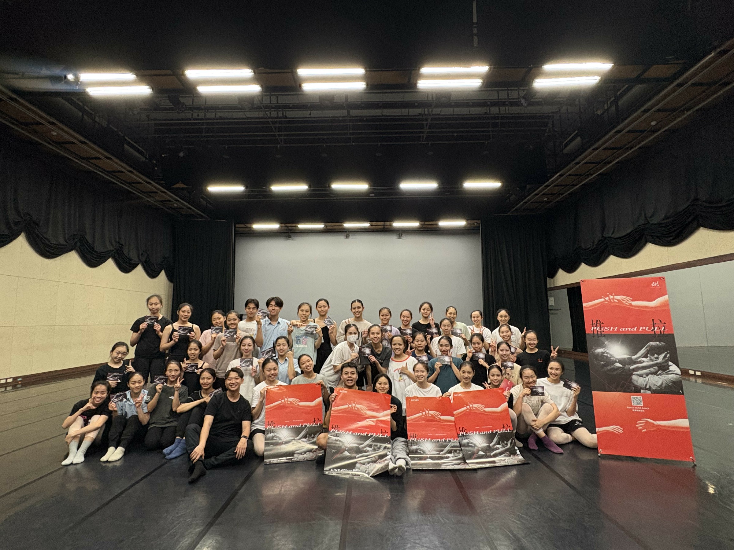 ↑圖說:《推拉 Push and Pull》校園推廣來到左營高中舞蹈班,由舞者盧瀅潔、李冠霖帶領40位學生認識雙人舞的互動與信任關係。課程最後,全體師生合影紀念,共同留下珍貴的回憶。(圖片來源:高雄市文化局提供)