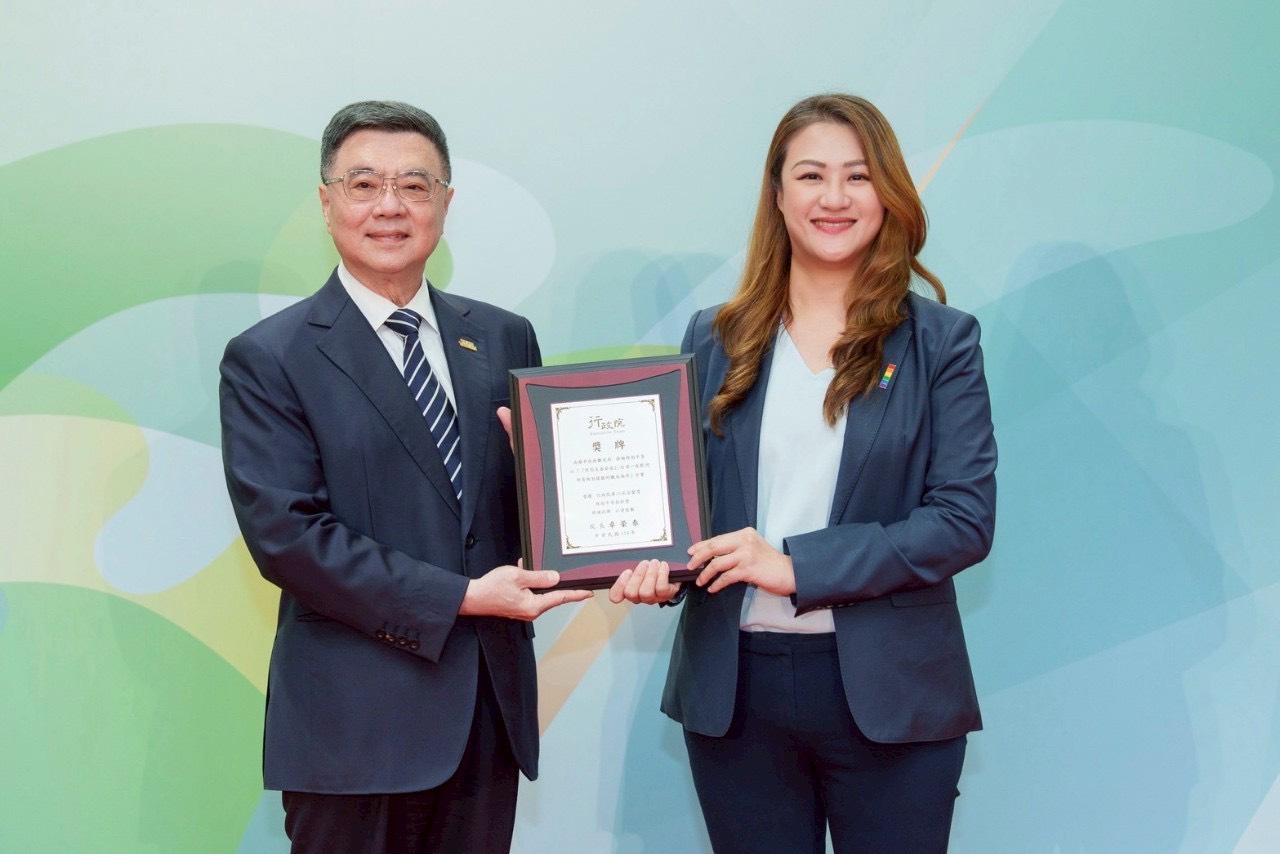 ↑圖說:行政院第23屆金馨獎-性平創新獎卓院長頒獎予高閔琳局長。(圖片來源:高雄市觀光局提供)