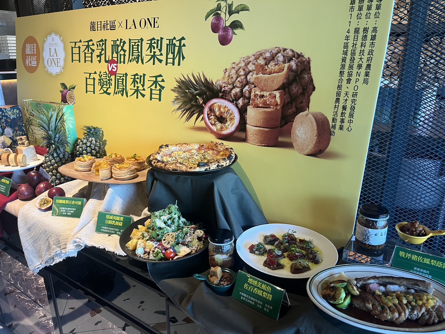 農業局表示,透過「根留農村」計畫輔導團隊樹德科技大學NPO研究發展中心的積極媒合下,由集團創辦人簡天才師傅運用創意巧思與專業技術,將龍目社區優質鳳梨、百香果等農產品轉化為具地方特色又具市場潛力的精緻甜點。本次研發產品,除了可為社區產業經濟發展帶來助益,也可結合目前龍目社區的農村旅遊行程,成為最具特色的伴手禮。此外,LA ONE餐廳主廚也結合龍目社區手工製作的「鳳梨豆腐乳」及「鳳梨蔭醬」入菜,開發出「米其林鳳梨餐宴」,呈現獨特台灣風味的義式料理。