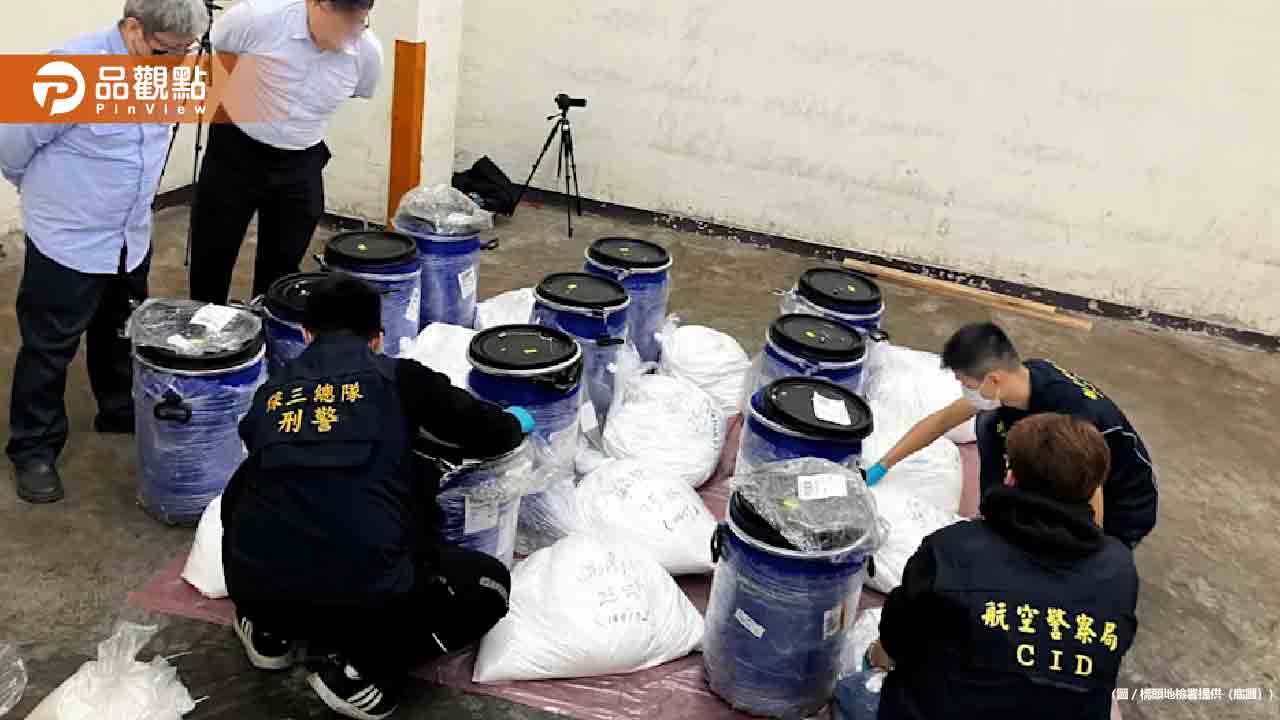 今年小年夜,海關人員發現一批申報的化學品空運貨物有異。經查驗確認內藏毒品,警方隨即展開埋伏行動,鎖定毒品第一線與第二線收貨人。搜索過程中,警方在桶子裡發現大量毒品,並搜出其他違禁品。