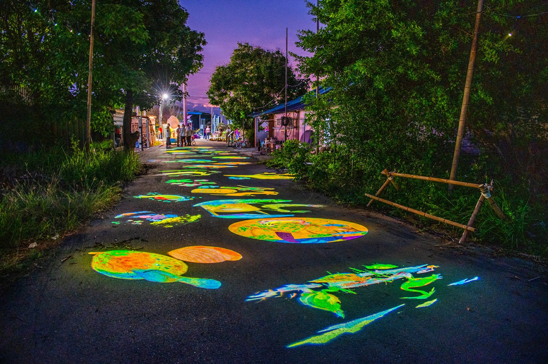 此次生活實驗節以「藝術點亮農村、文化深化生活」為核心,活動現場邀集五組藝術創作團隊參與,透過與地方社區協力製作,將農村景觀轉化為藝術語彙。策展團隊艸非火工作室打造的《田隙光影》,以地景投影再現《小王子》星球間旅行的奇想,並導入LINE官方帳號互動體驗,提供無紙化導覽與任務挑戰,讓民眾透過科技參與更深層的環境教育。