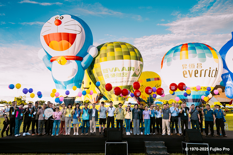 臺東縣長饒慶鈴表示,活動自2011年創辦以來,已成為臺灣暑假最具代表性的盛事活動,十五年來持續以熱氣球為媒介,向世界展現臺東的獨特之美,2025熱氣球活動為期41天,將有17個國家飛行員、共40顆國內外造型球(國外27顆、國內13顆) 齊聚臺東鹿野高台。全新「哆啦A夢熱氣球」也在5日正式亮相,為活動注入更多活力與歡迎;哆啦A夢原創公司Fujiko Pro勝又社長也特別遠道而來,親自出席開幕PIBALL儀式,與大家一同感受熱氣球升空的震撼時刻。