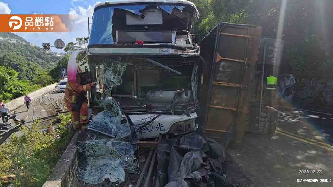 混凝土車上45歲蘇姓駕駛獲救時,全身多處挫傷但意識清醒。副駕駛座65歲石姓婦人被拋出車外,雙腳骨折且當場失去呼吸心跳,經急救後仍回天乏術。這起事故共造成2人死亡、1人輕傷。