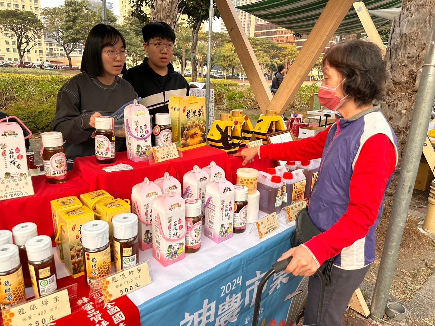 ↑圖說:八月正是岡山地區龍眼蜜產季,正好來神農市集選購純正蜂蜜。(圖片來源:高雄市農業局提供)