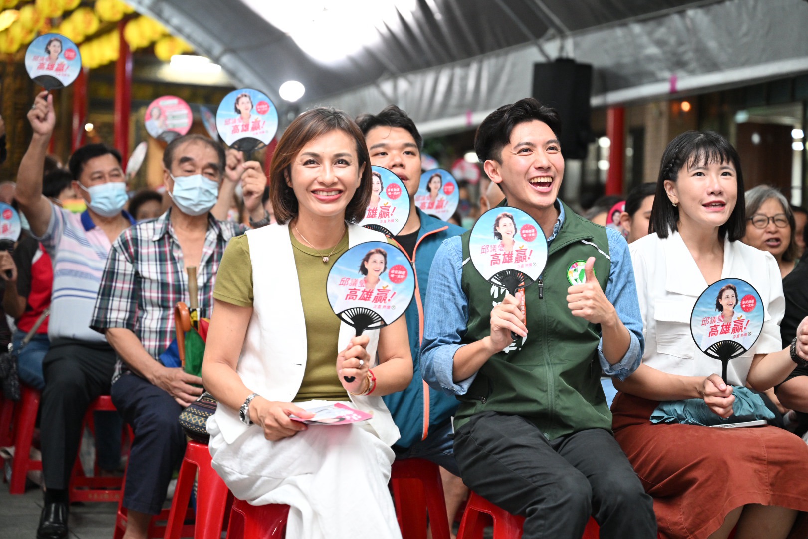 立法委員邱議瑩近日啟動《傾聽、共贏之旅》,以「產業傾聽+地方座談」為雙軸,從政策深化到組織動員,日前在前鎮草衙朝陽寺舉行座談會,吸引超過五百位市民齊聚廟埕,除了議員鄭孟洳到場力挺外,現場還來了近期在社群爆紅的明孝里里長林浤澤則及近十位年輕里長,展現邱議瑩在基層及年輕世代的高人氣。