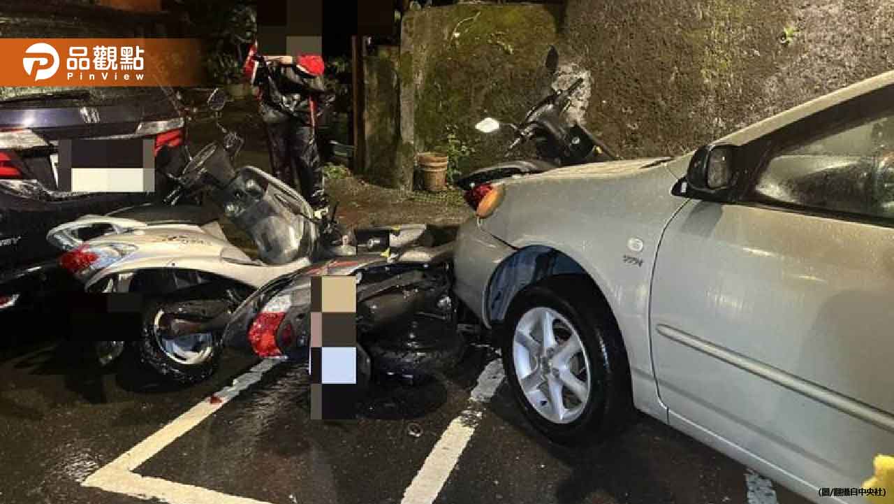 內湖77歲婦豪雨夜駕車失控!連環撞擊7機車