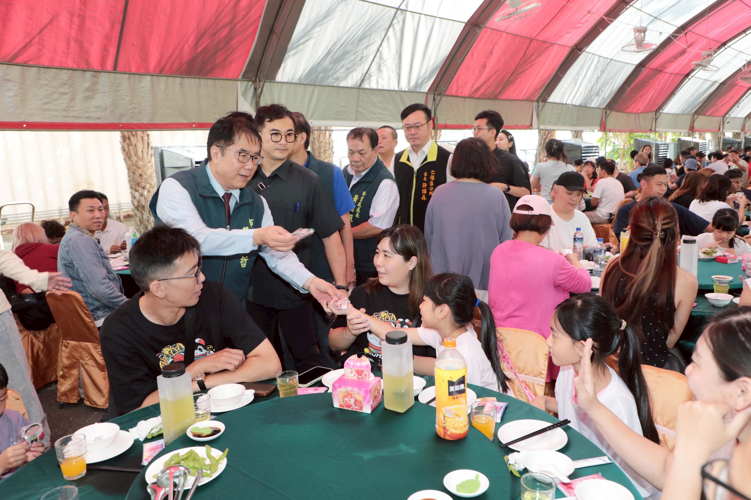 圖說:臺南市長黃偉哲於與民眾親切互動並分享辦桌美食 (圖片來源/臺南觀旅局提供)