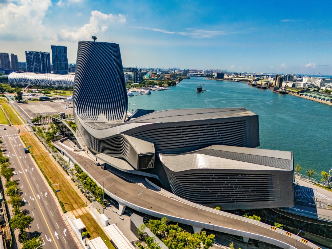 圖說:高雄港旅運中心以流線型的波浪外觀成為矚目的地標,設計理念兼顧智慧建築的先進性與綠色環保的永續性。(圖片來源:臺灣港務公司提供)