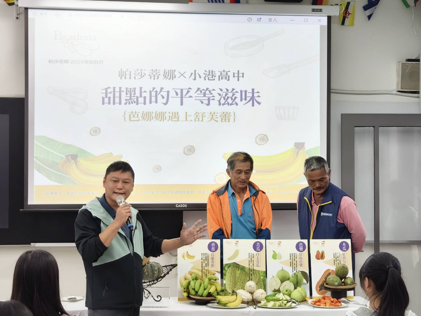 高雄市政府農業局結合杉林社區與帕莎蒂娜國際餐飲集團,26日於小港高中舉辦第十七屆「味覺教育」課程,延續多年推動的「吃在地、識時蔬」理念,從產地食材、甜點創作到性別平權與食農教育,帶領學生透過味覺認識土地,也理解農業永續與飲食文化的多元價值。