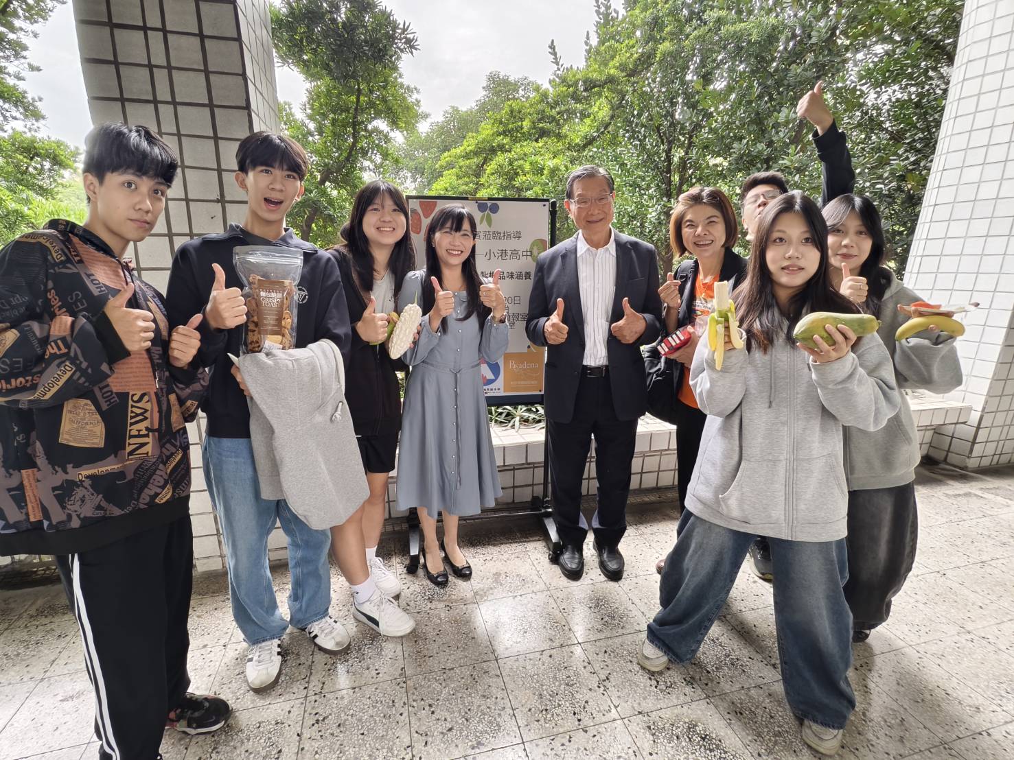 ↑圖說:帕莎蒂娜國際餐飲集團董事長許正吉(中)、高雄市立小港高中校長薛鈺勤(左4)肯定味覺教育課程帶領學生從土地認識飲食文化,也從安全用藥與有機觀念理解農業永續的重要性。(圖片來源:高雄市農業局提供)