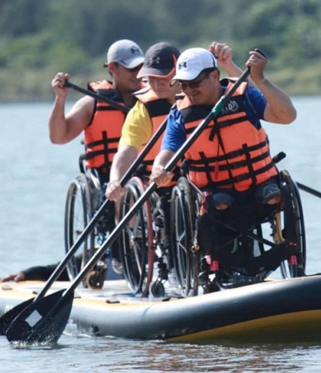 ↑圖說:民眾體驗輪椅龍舟版。(圖片來源:臺東縣政府提供)