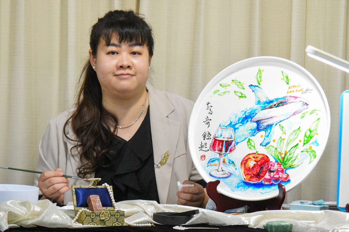 ↑圖說:日本市政府藝術講師周晏羽現場示範果醬畫盤(圖片來源:高雄市文化局提供)
