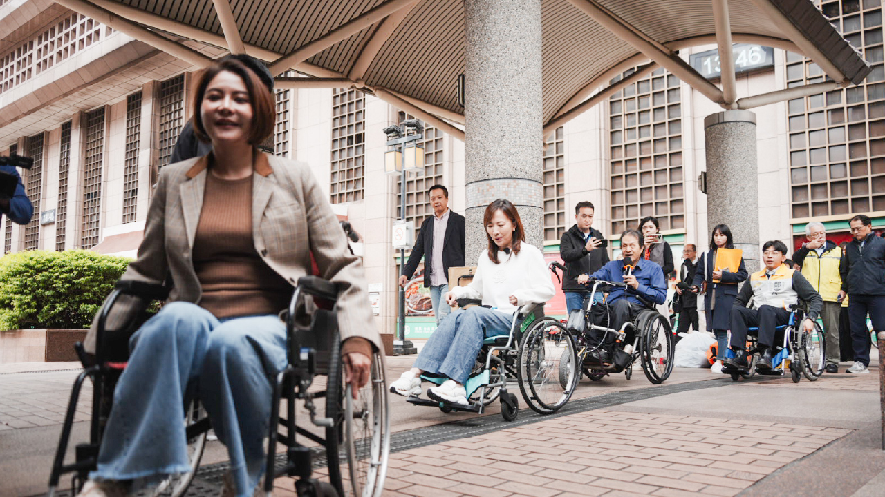 ↑圖說:由多個身心障礙團體共同發起的無障礙路線體驗行動5日下午在台北車站大廳展開,出席民代搭輪椅與身障者體驗台北車站的無障礙動線。(圖片來源:主辦單位提供)