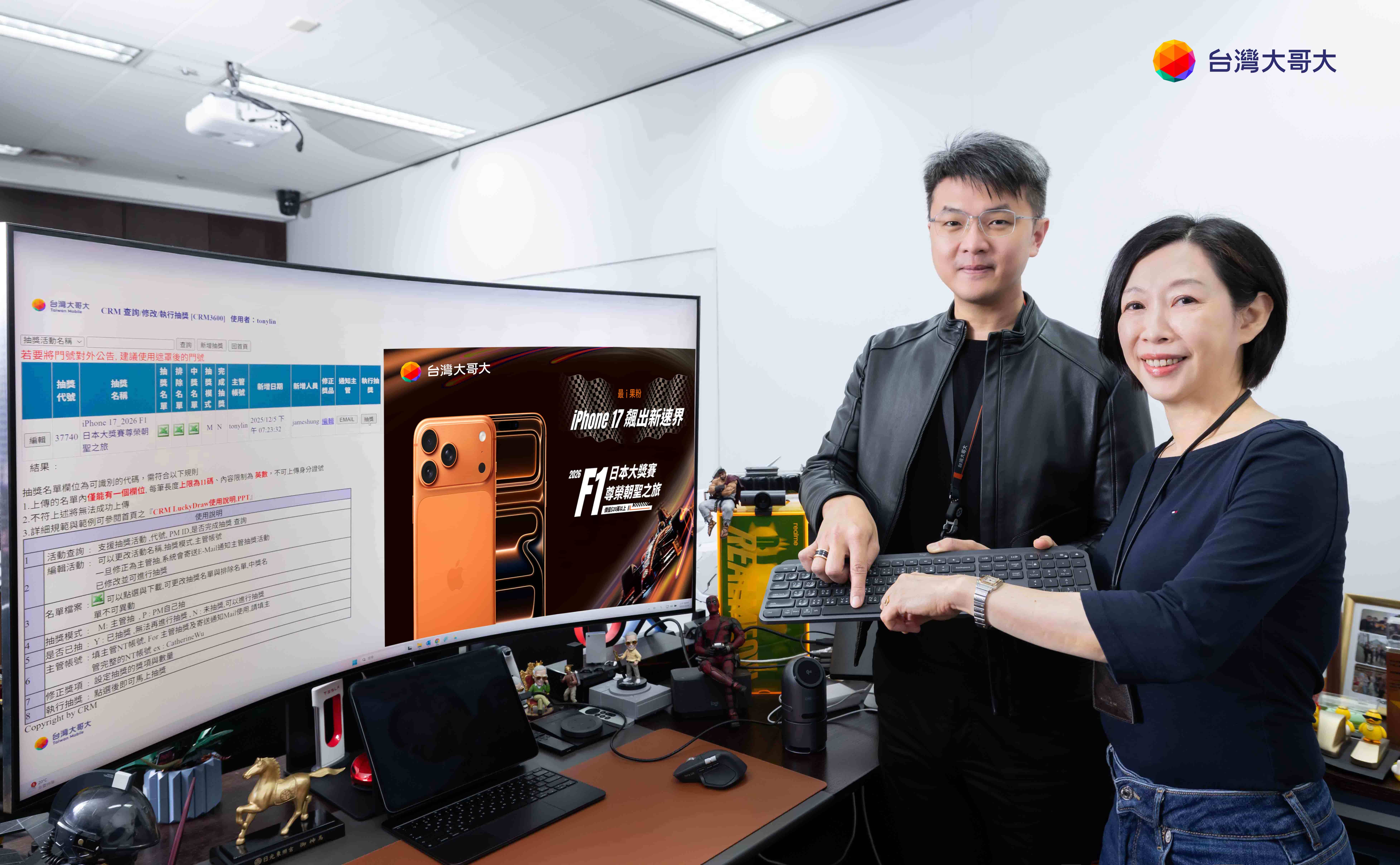在律師見證下,台灣大昨天舉辦抽獎活動,由個人用戶事業商務長林東閔(下圖左,台灣大提供)、行銷暨營運支援副總陳麗郁(下圖右)共同抽出7組、共14位幸運兒,將獲得總價值近300萬元、每人價值逾20萬元的「F1 日本大獎賽尊榮朝聖之旅」,於明年親赴日本鈴鹿賽道,在主看台欣賞F1賽事,走入車隊指揮中心「Pit Lane」近距離感受秒級換胎與引擎震動,還能參加「Inside F1」貴賓活動,與現役或傳奇車手互動,成為今年果粉圈最受矚目的豪華旅程。